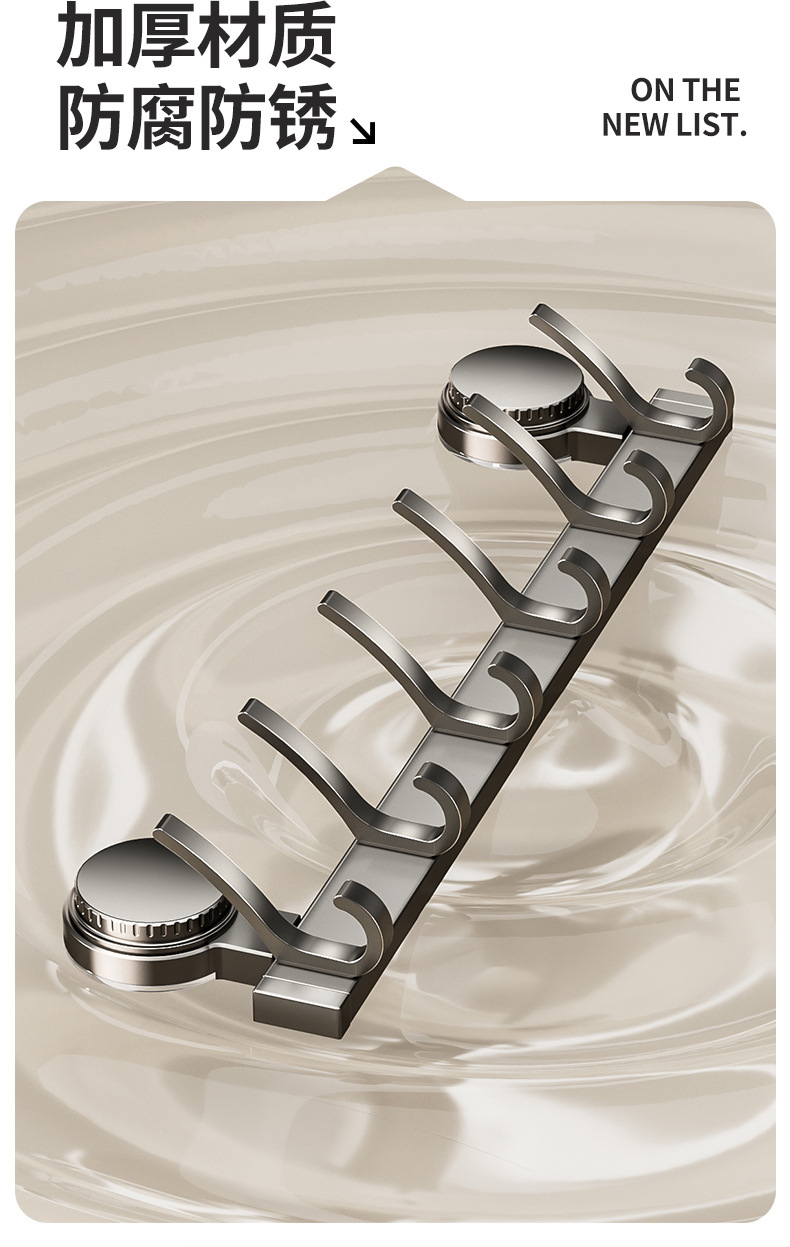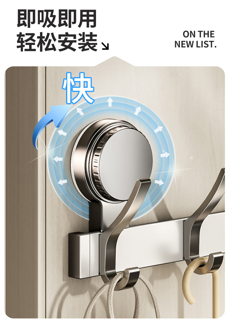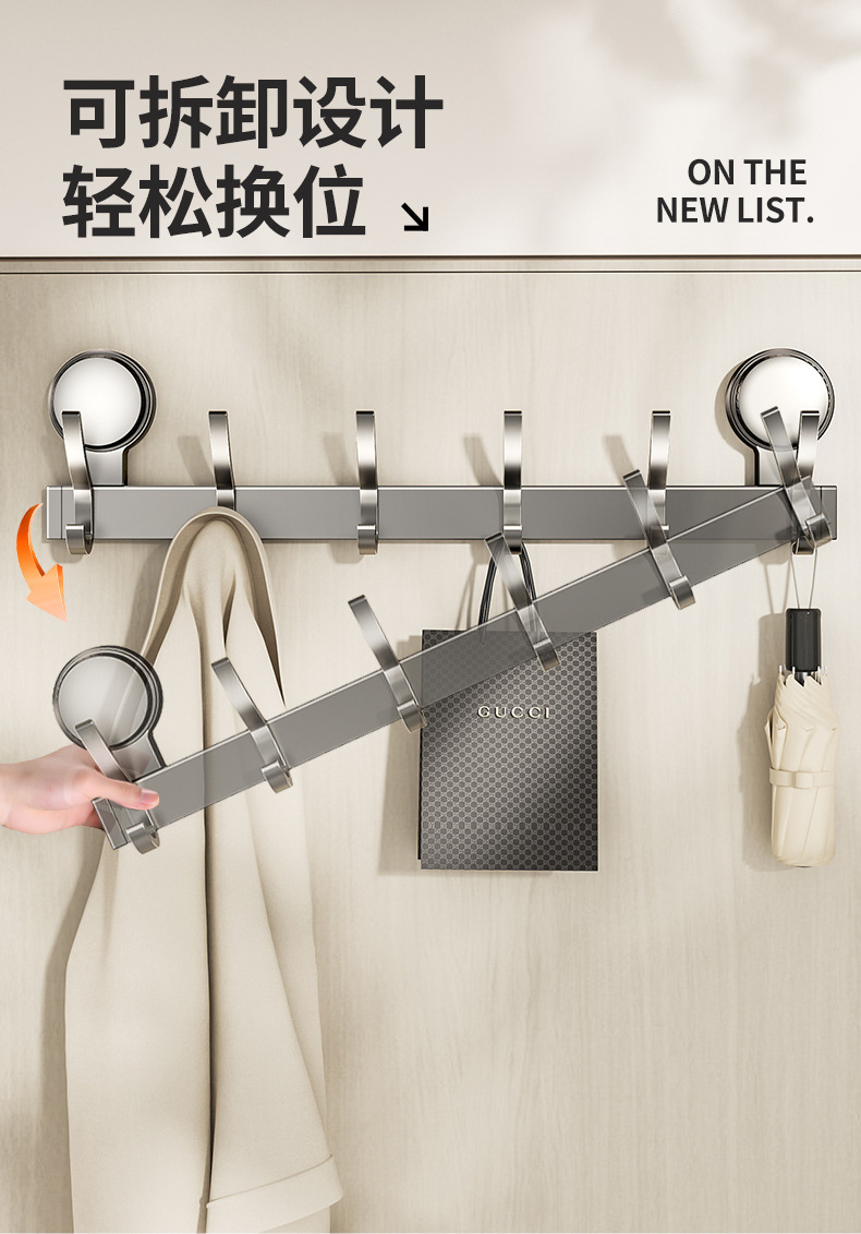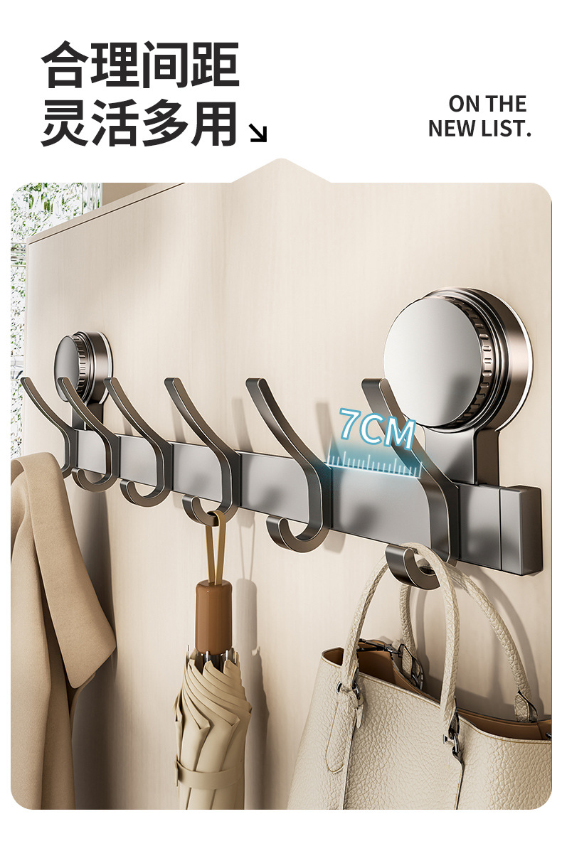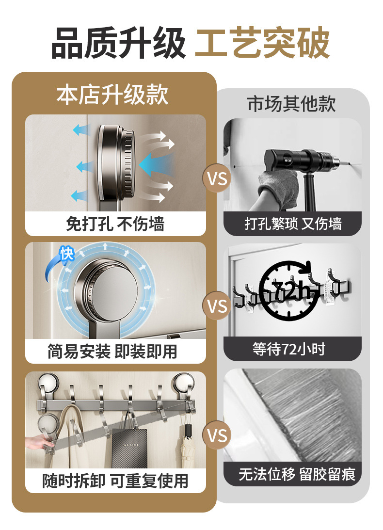 浴室免打孔衣帽挂钩多功能卫生间玄关墙上壁挂收纳架吸盘门后粘钩