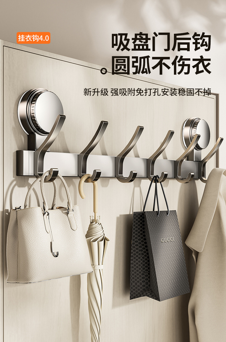 吸盘门后挂钩免打孔强力粘胶排钩强力承重钩子入户门挂衣架收纳架