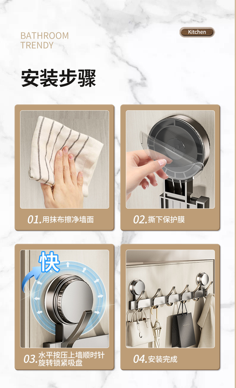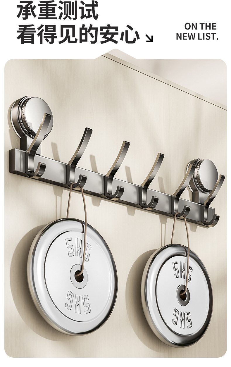 吸盤フックは穴を開けないで一列の強力な荷重を受けます。