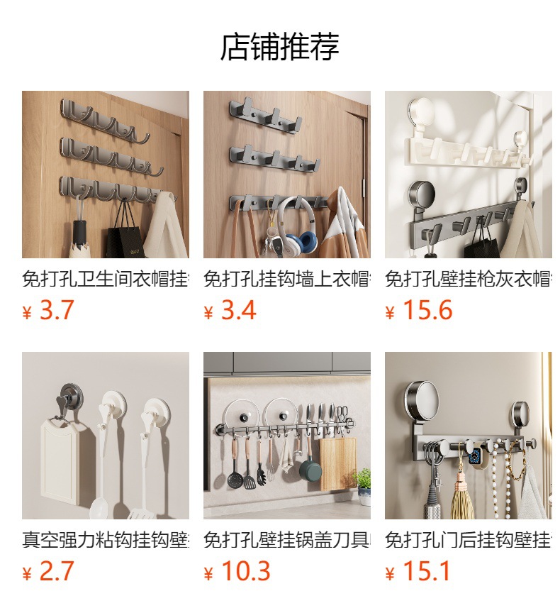 吸盤ドアの後ろにフックして穴を開けないで、強力な荷重服のフックを入れて、ドアにハンガーを掛けてフックを収納します。