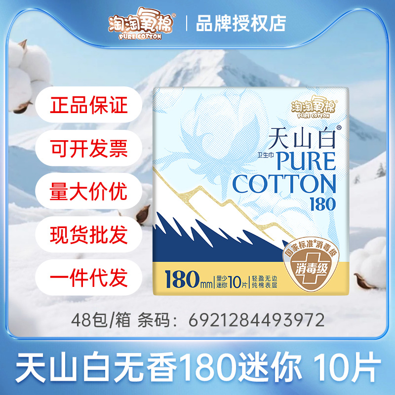 タオタオ酸素綿天山白生理用ナプキン、女の子用純綿デイリーミニナプキン、180mm生理用ナプキン、箱売り