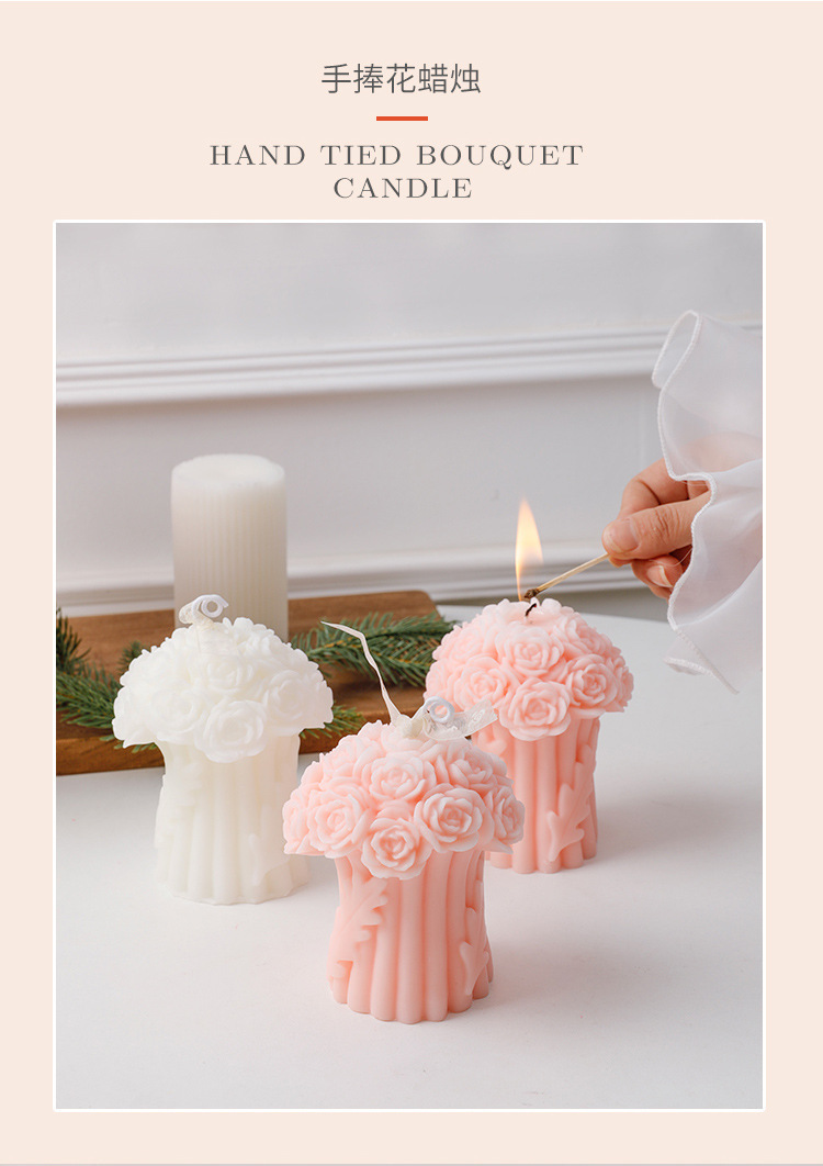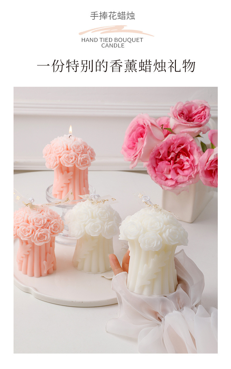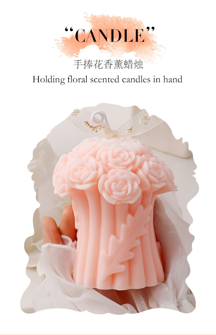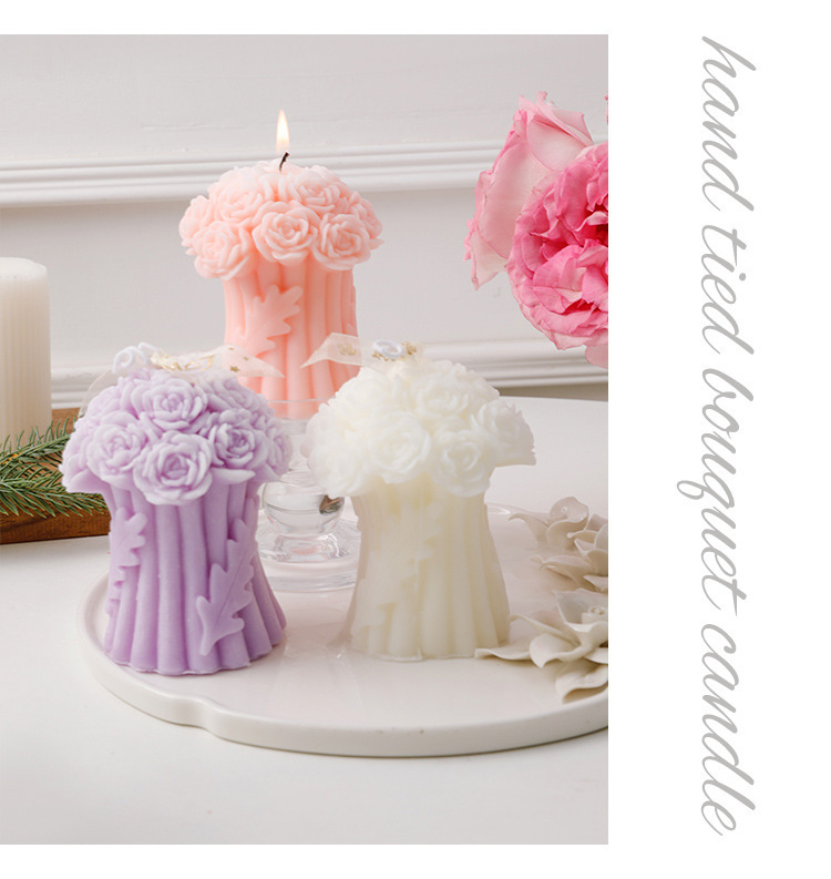 新しい手は花のバラの花束のシリコンの鋳型のdiyの立体の香薫のろうそくの石膏のお土産の装飾の置物を持ちます。