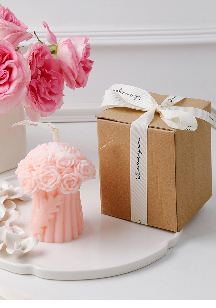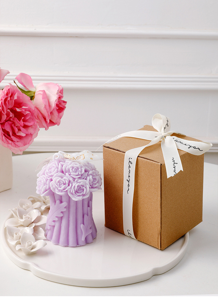 ロマンチックな手は花のバラの花束の香薫のろうそくの結婚式のお土産の家庭の装飾の置物のろうそくの誕生日の贈り物を持ちます。