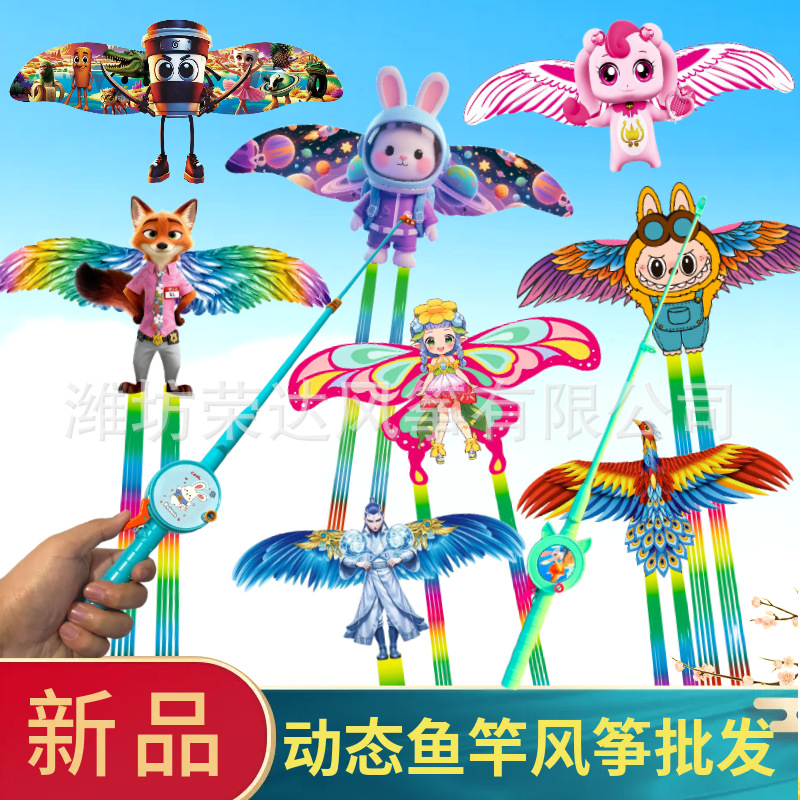 维坊の新型シミュレーション動態釣竿凧卸売り児童漫画は釣竿凧プラスチック翼を持っている