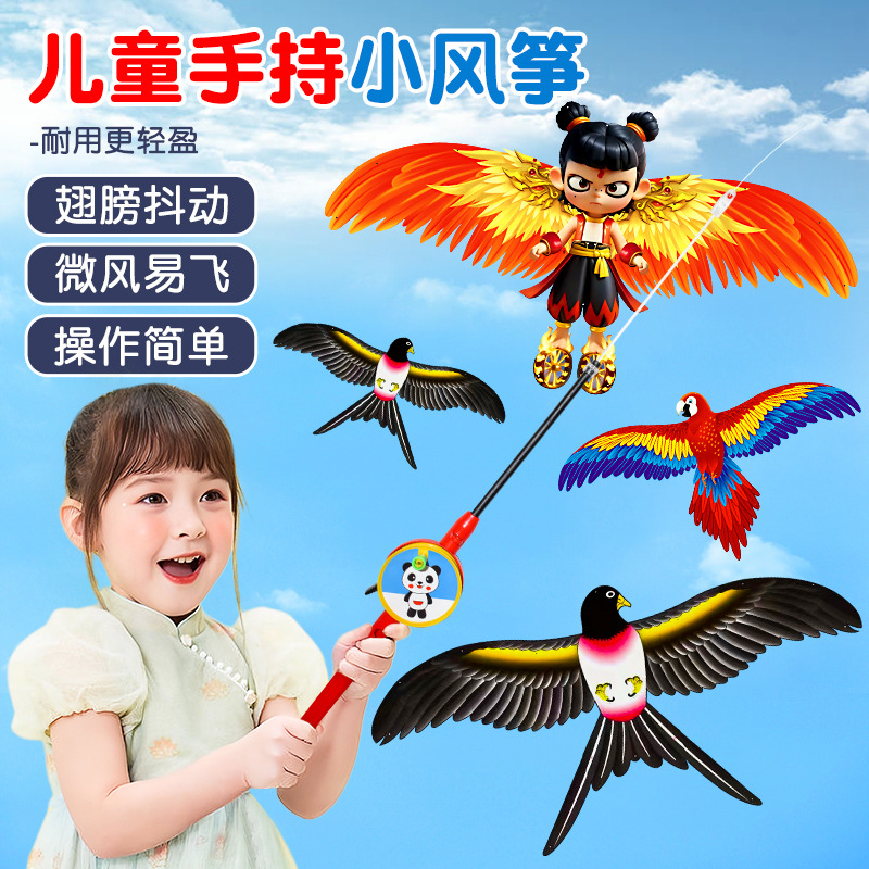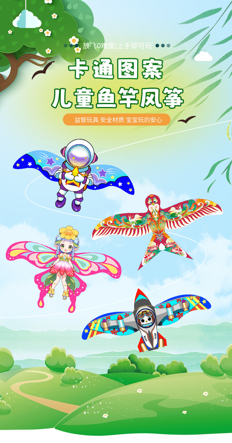 動く釣り竿凧 子供用手持ち 2025年新作 卸売 屋台販売 濰坊 アウトドア ツバメ 漫画 小型凧