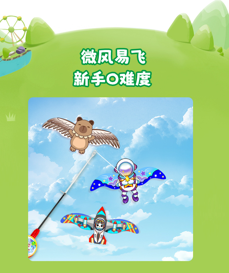动态鱼竿风筝 儿童手持易飞风筝翅膀抖动 儿童新款卡通风筝批发