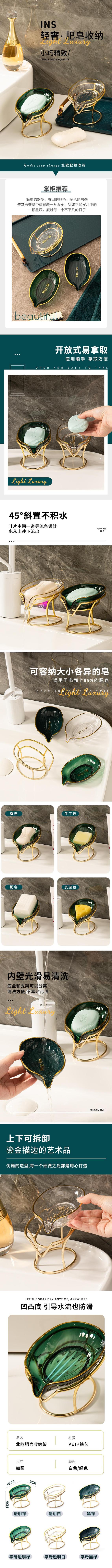 抖音風の軽奢メタルセラミック製ソープディッシュ、穴あけ不要の葉型ソープホルダー、浴室用洗濯石鹸皿、ソープトレイ
