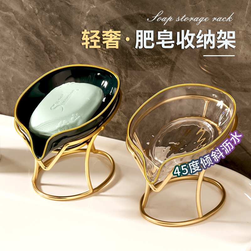 高級感のある軽奢風金箔入り石鹸置き、家庭用浴室排水石鹸箱、クリエイティブな穴あけ不要収納棚
