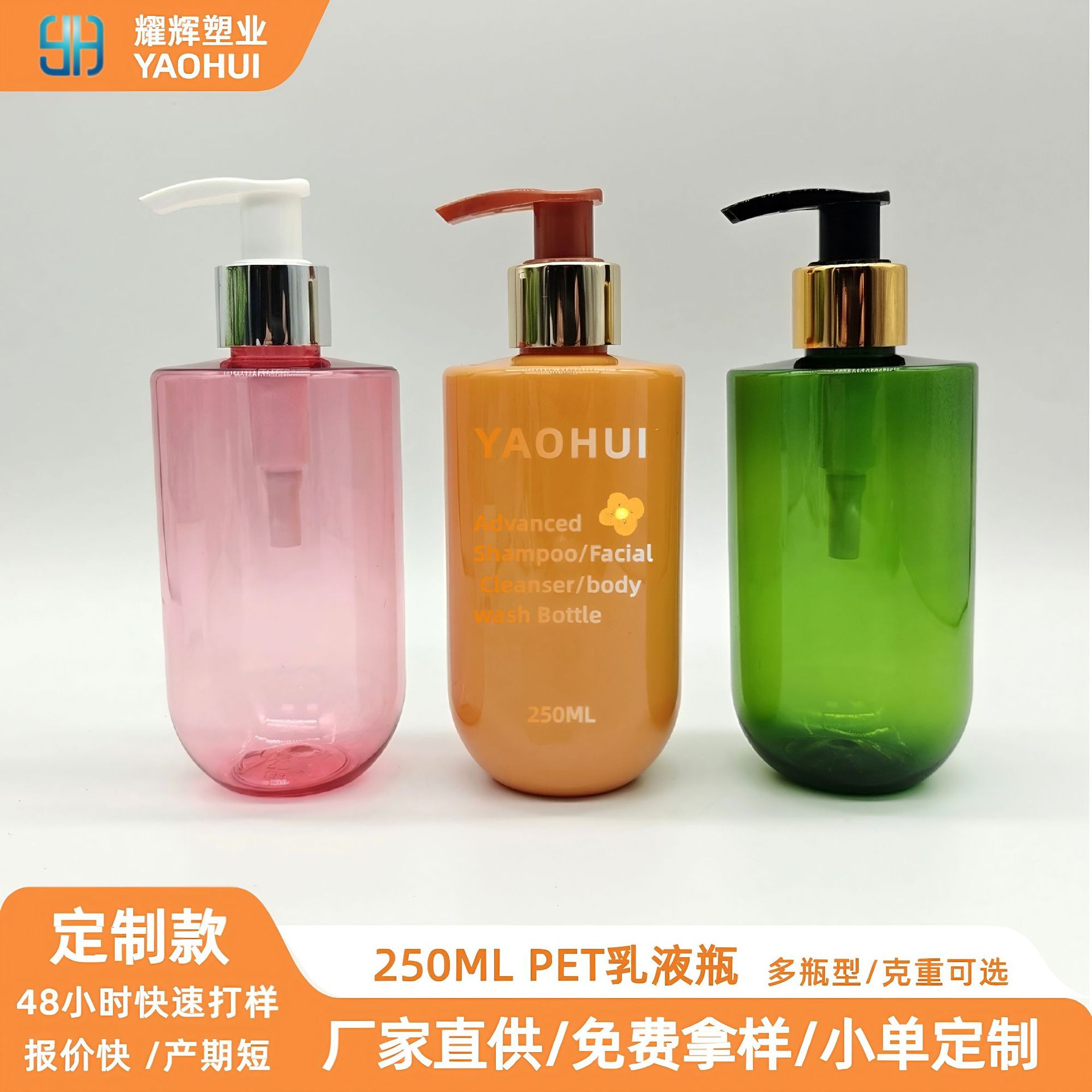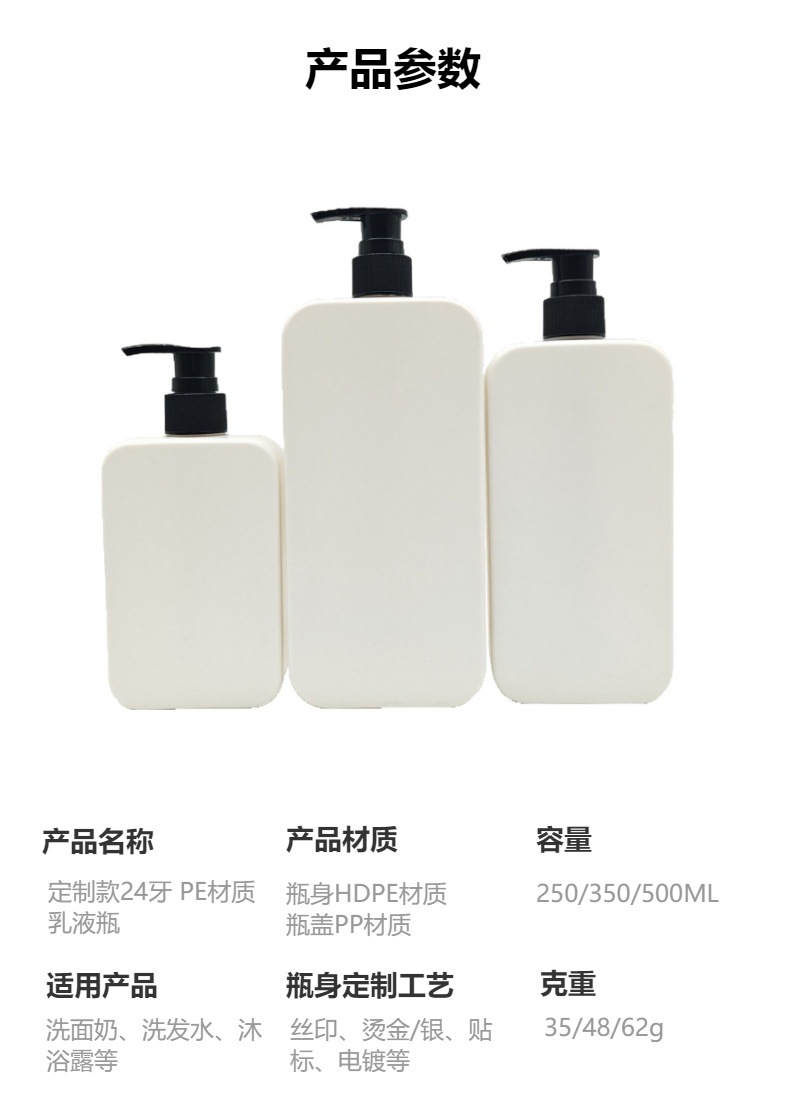 卸売り250ml 300ml乳液角瓶シャンプー瓶洗顔瓶入浴露瓶体乳押え瓶