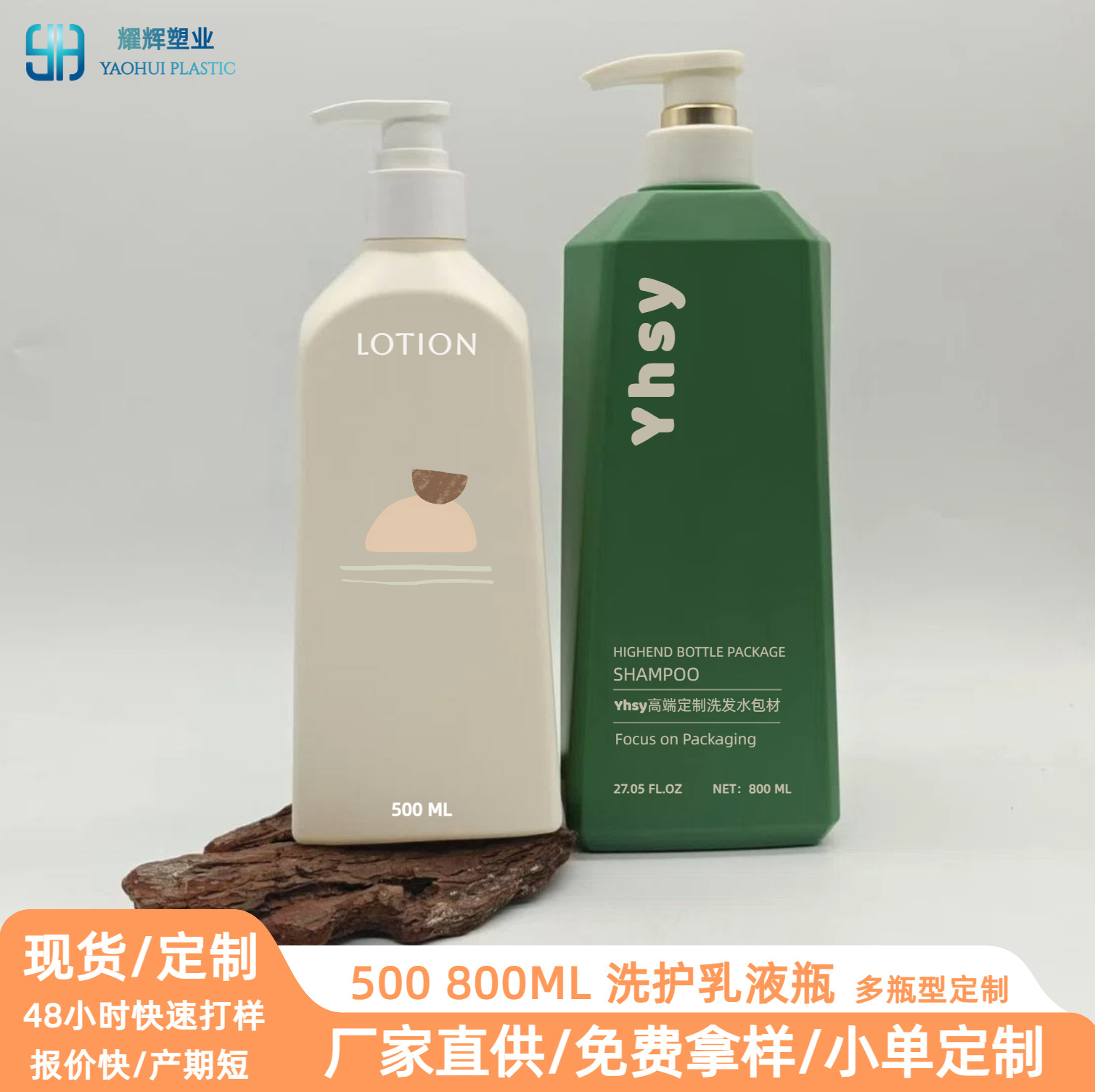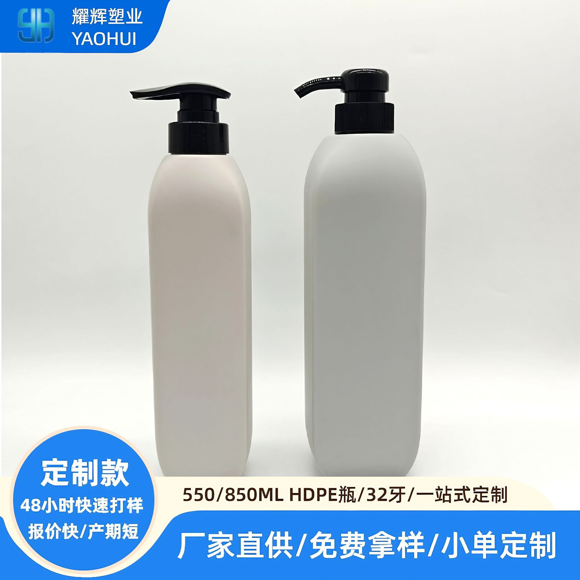 厂家定制300ml按压泵头乳液瓶500ml 洗发水沐浴露分装瓶PET塑料瓶