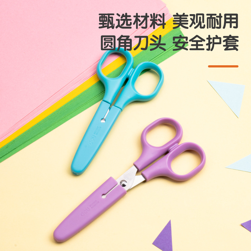 有力6022ハサミ家庭用手作り小ハサミ子供小学生用切り紙ハサミ安全保護カバー付き