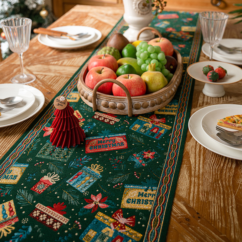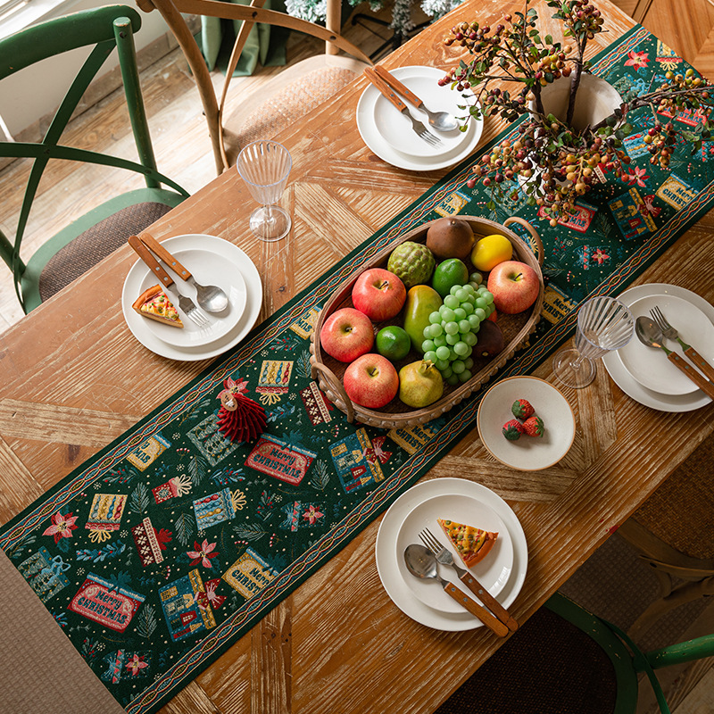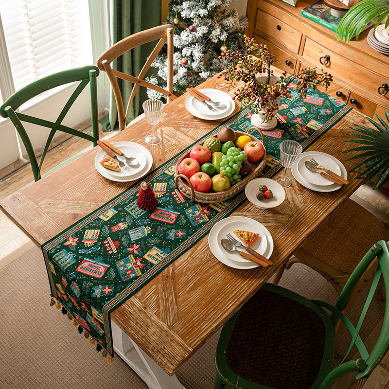 伊琪韻美式クリスマス流蘇節テーブル旗緑ジャカードプレゼント茶旗テレビ棚テーブル祝日装飾