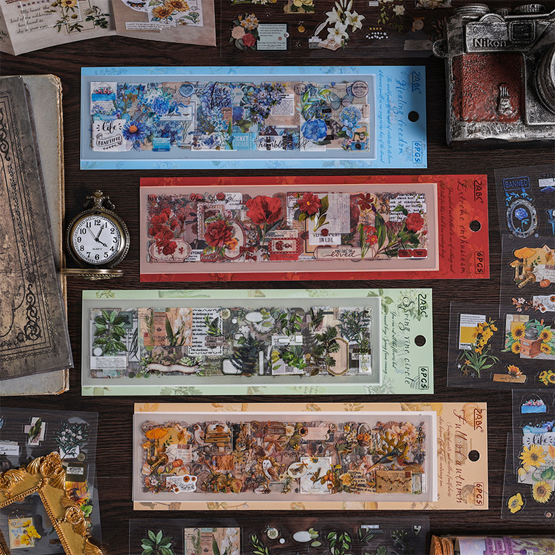 花のメッセージ透明防水ペットステッカー diy ハンドブック日記ステッカークロスボーダーレトロスタンプ花ステッカー