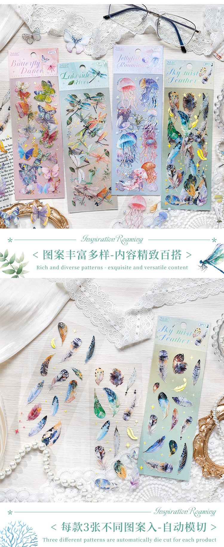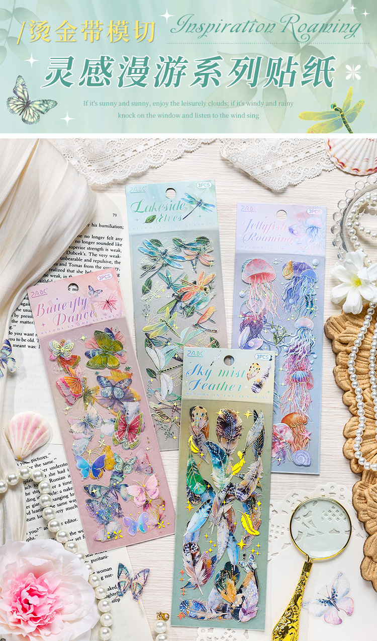 インスピレーションローミング透明防水petステッカーdiy手帳日記ステッカークロスボーダーレトロレーザー動物ステッカー