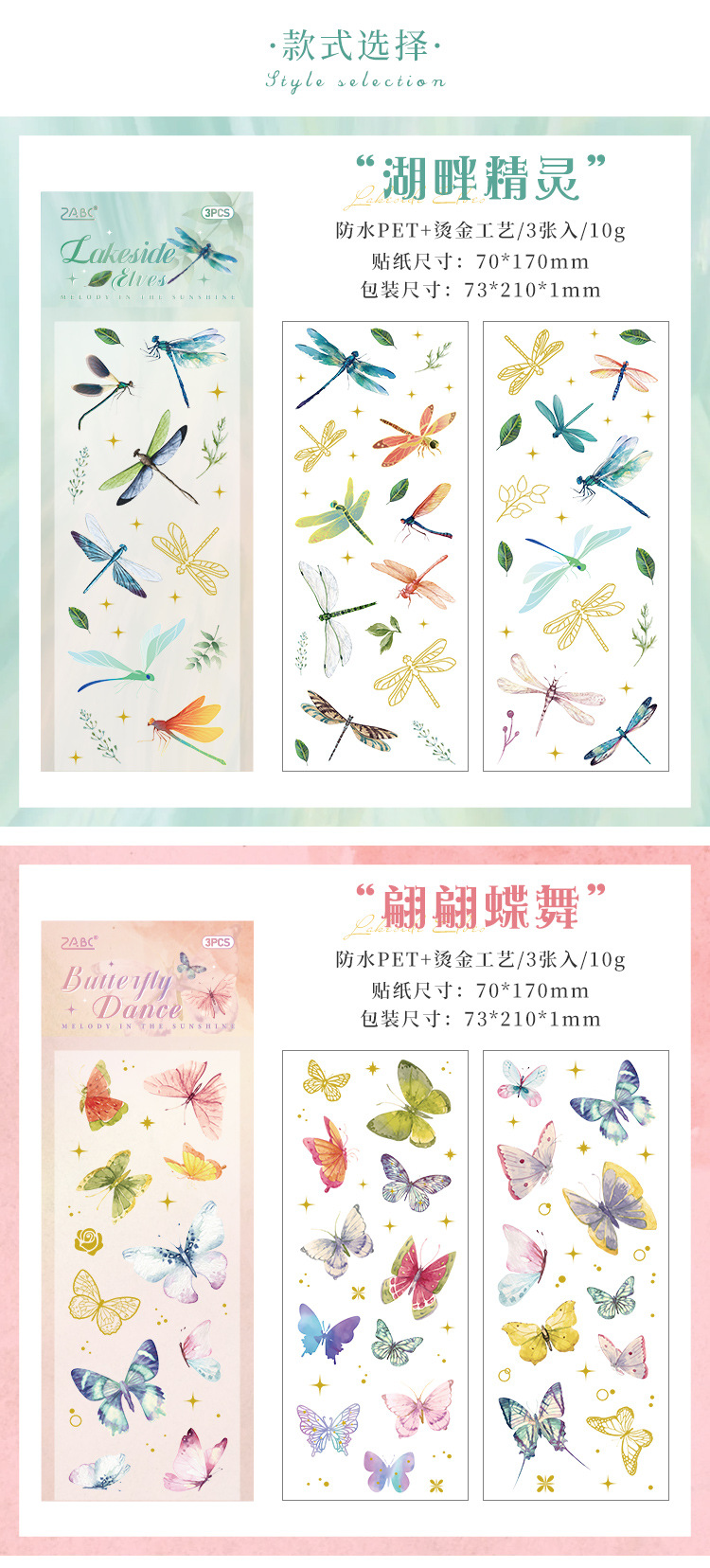 韓国のカラフルなレーザー銀辺蝶猫星線装飾シールdiy手帳カード装飾素材