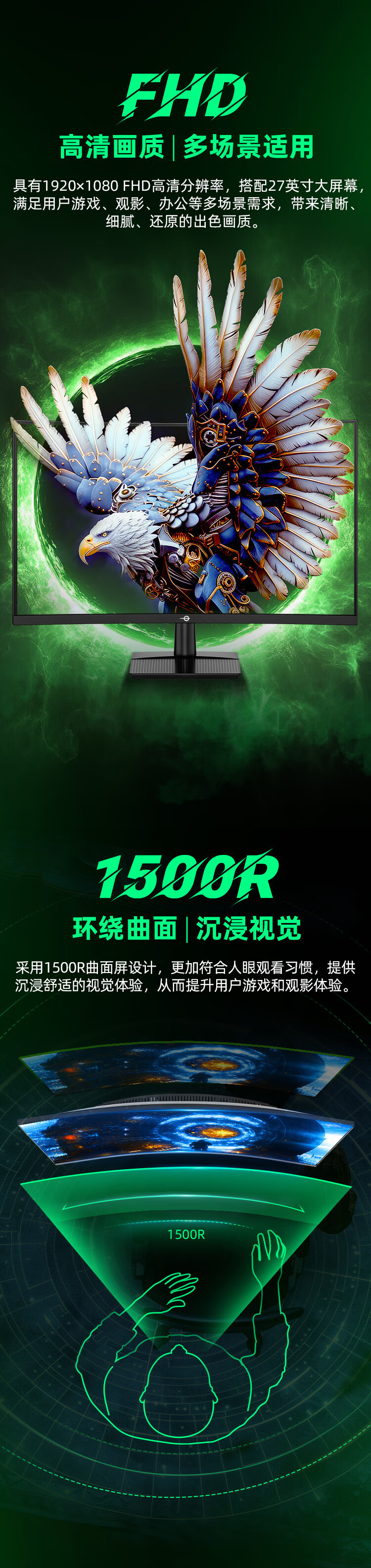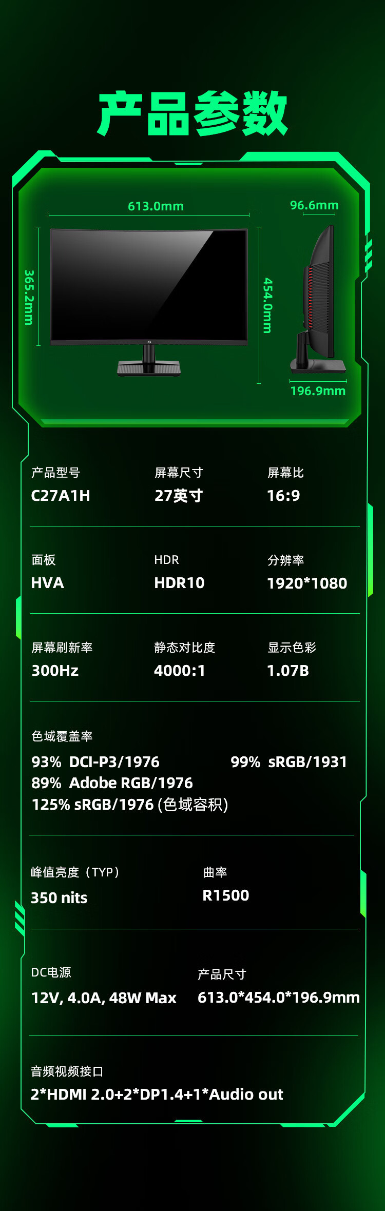サイズ C27A1H 27inch 1k 300hz 1500R 曲面