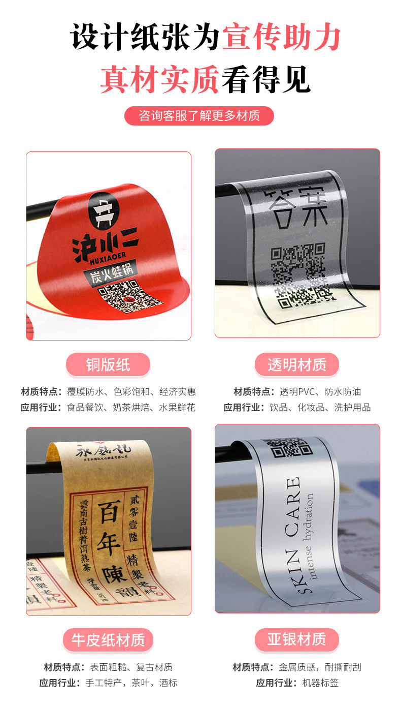 粘着ロゴシール製作商標二次元コード広告防水透明ラベル販売ミルクティーカップシール