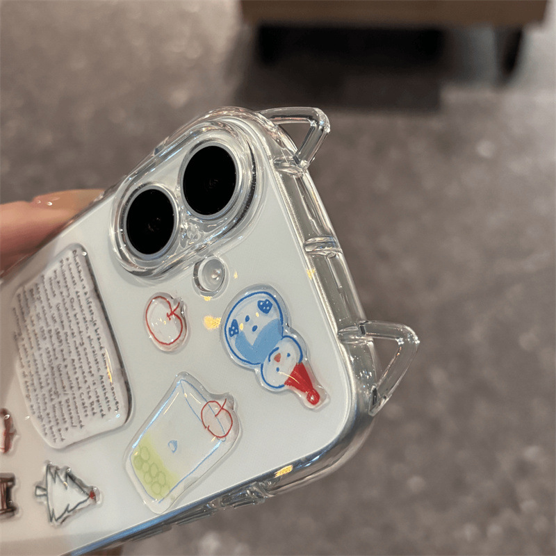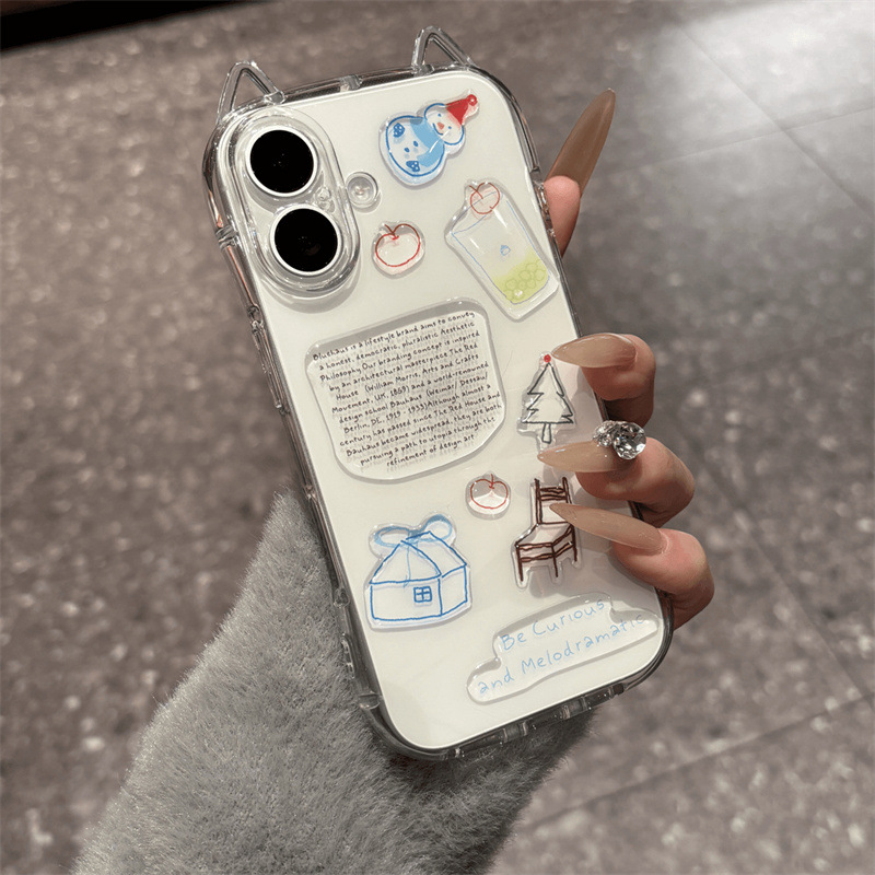自己接着剤が必要です [猫耳 TPU + DIY 雪だるま接着剤パッチ] 細かい穴 - 透明