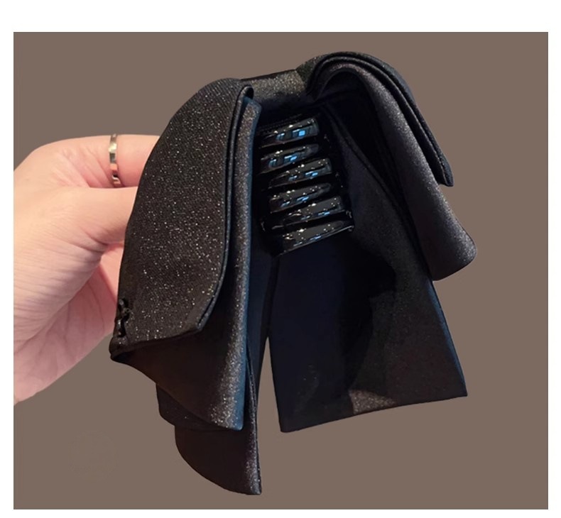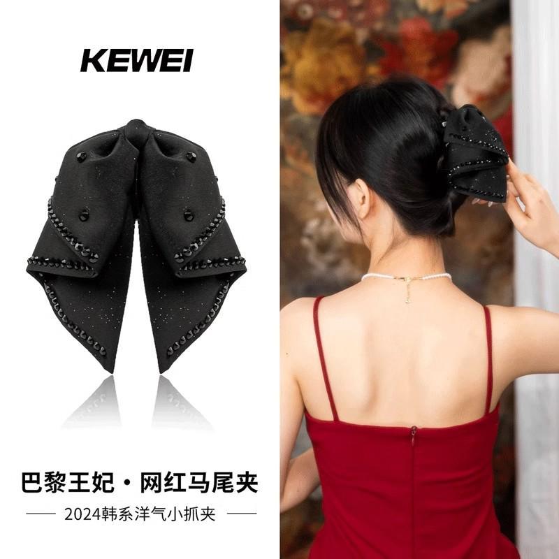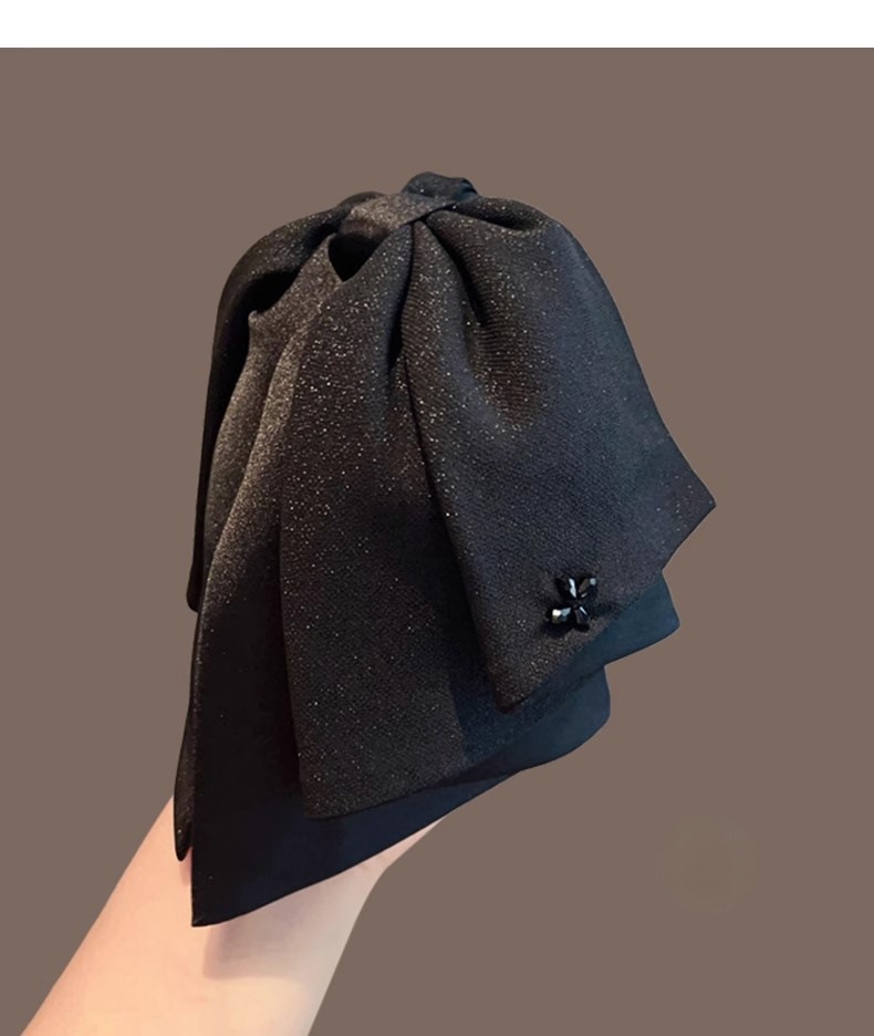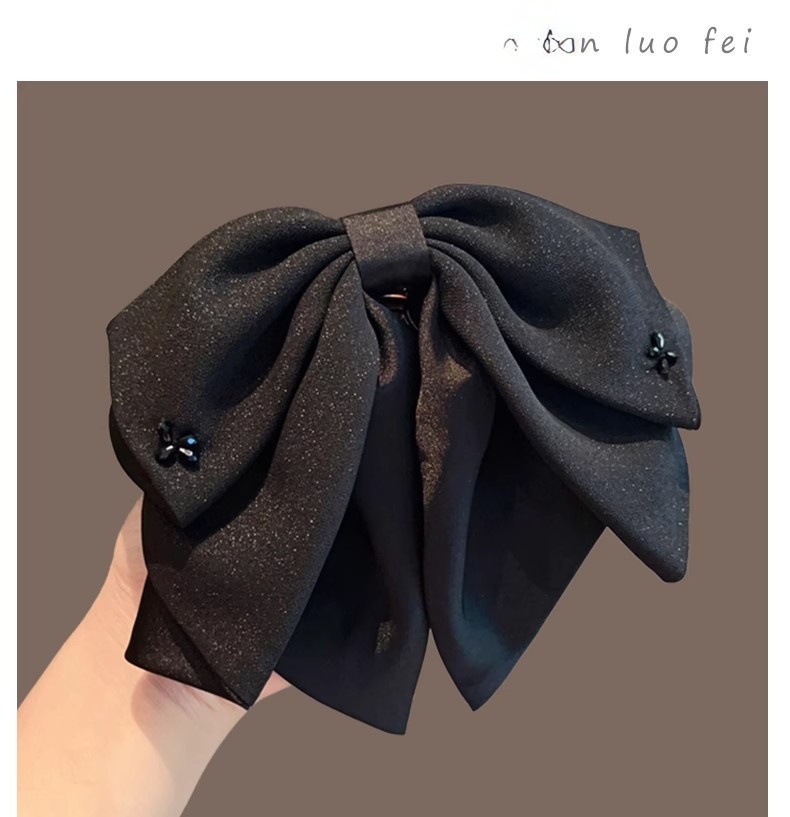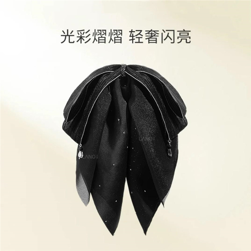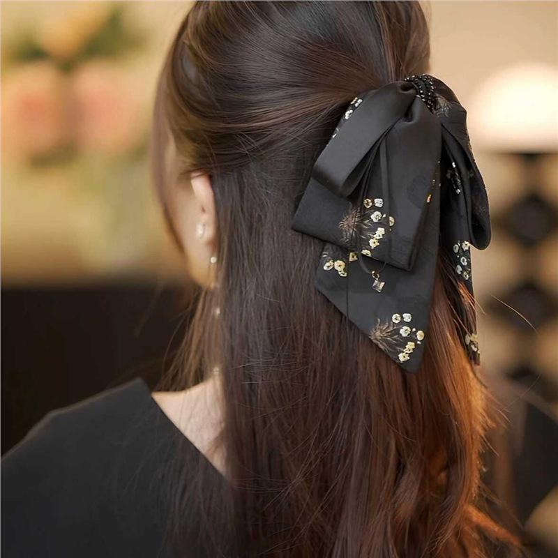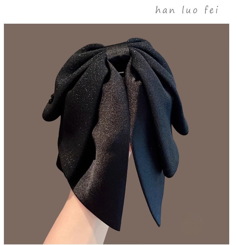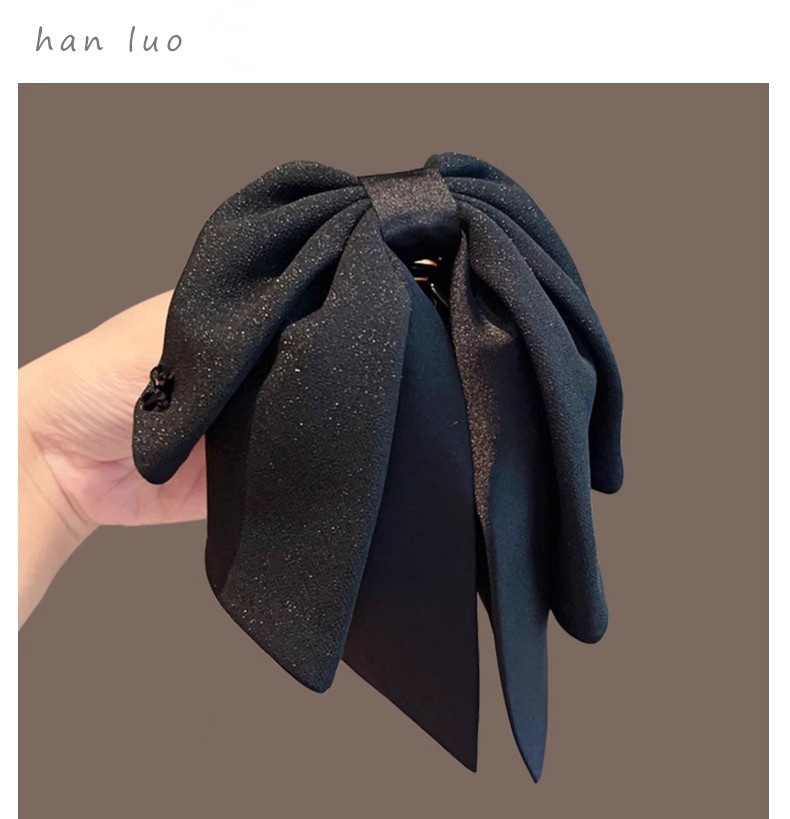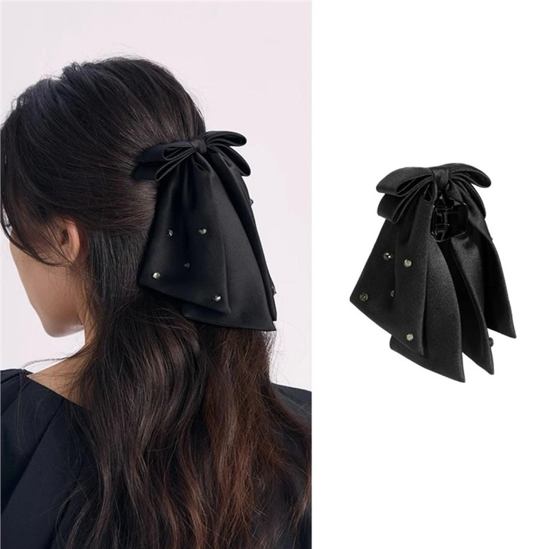 2025年新作韓国シフォンブラックリボンポニーテールクリップ後頭部用、髪のボリュームを高める高級ヘアクリップ
