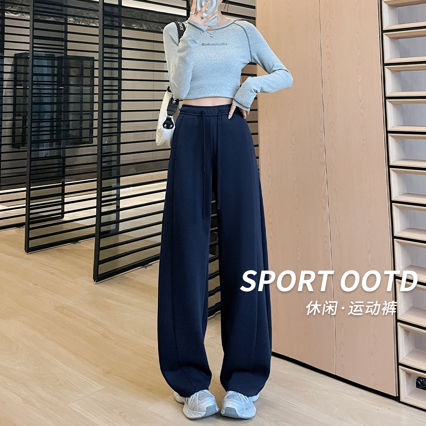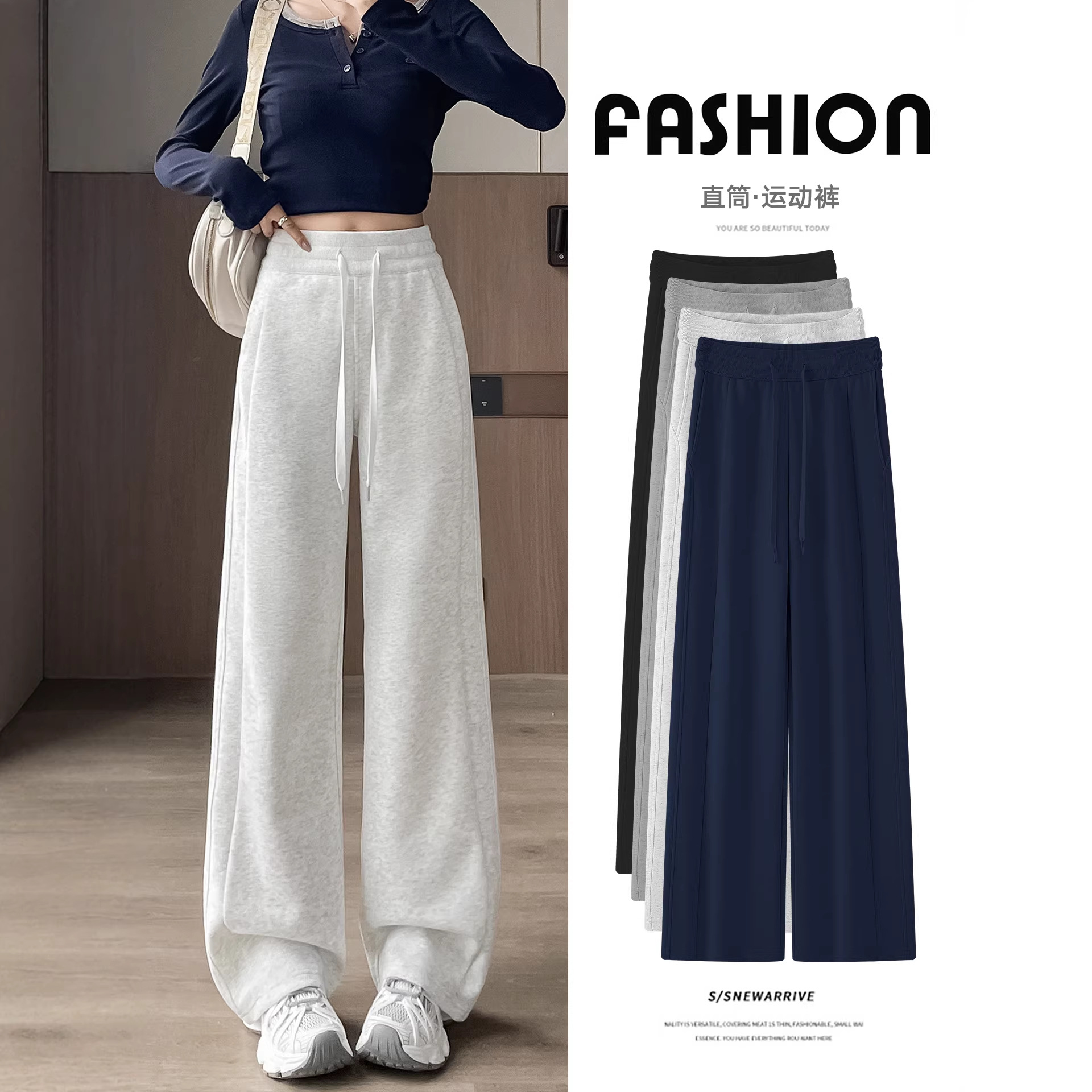 春秋运动裤子女2026新款窄版直筒阔腿裤女高腰垂感显瘦卫裤休闲裤
