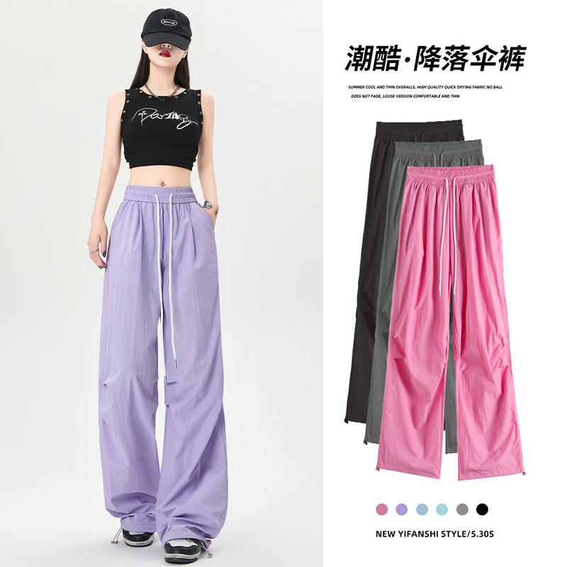 女性用ハイウエスト巾着ワイドレッグパンツ、夏用薄手ストレートスポーツパンツ、ナローバージョン、スリミングヨガフィットネスカジュアルパンツ