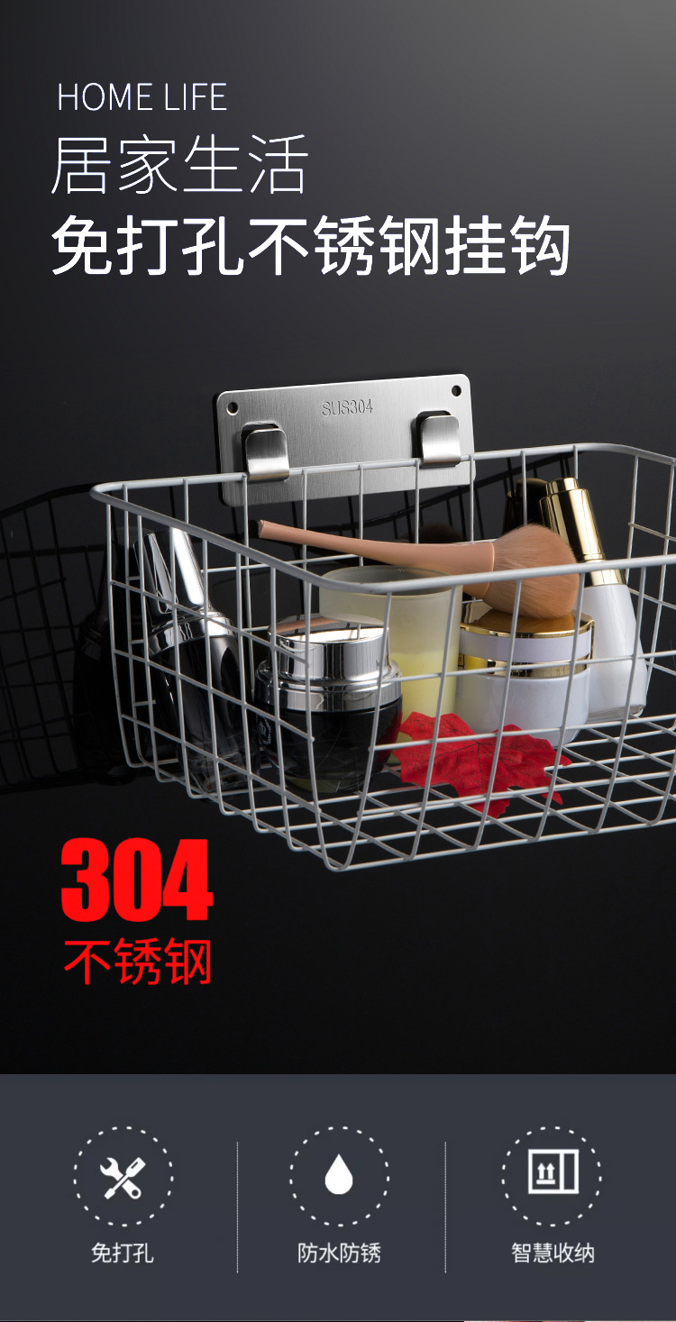 304ステンレスラック箸籠フック無釘パッチクリップ無穴タイル浴室壁掛