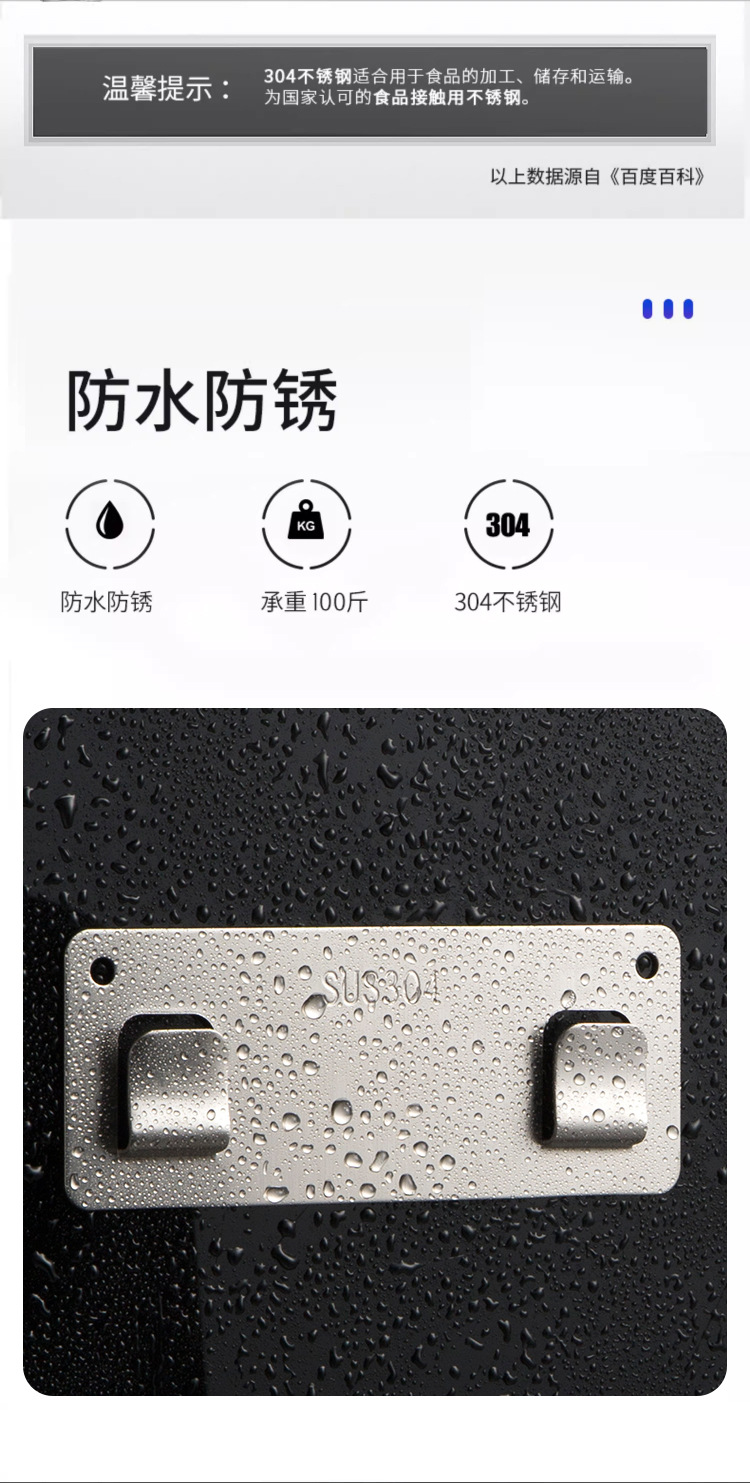 物置棚専用釘なしシール304ステンレスフック穴なしタイル壁壁掛け式粘着シート