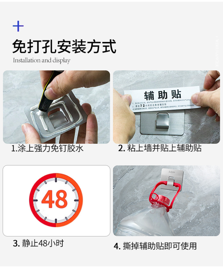 釘不要の接着剤を使用したシングルフック吊り下げバックル,釘不要の接着剤を使用したダブルフック​​吊り下げバックル