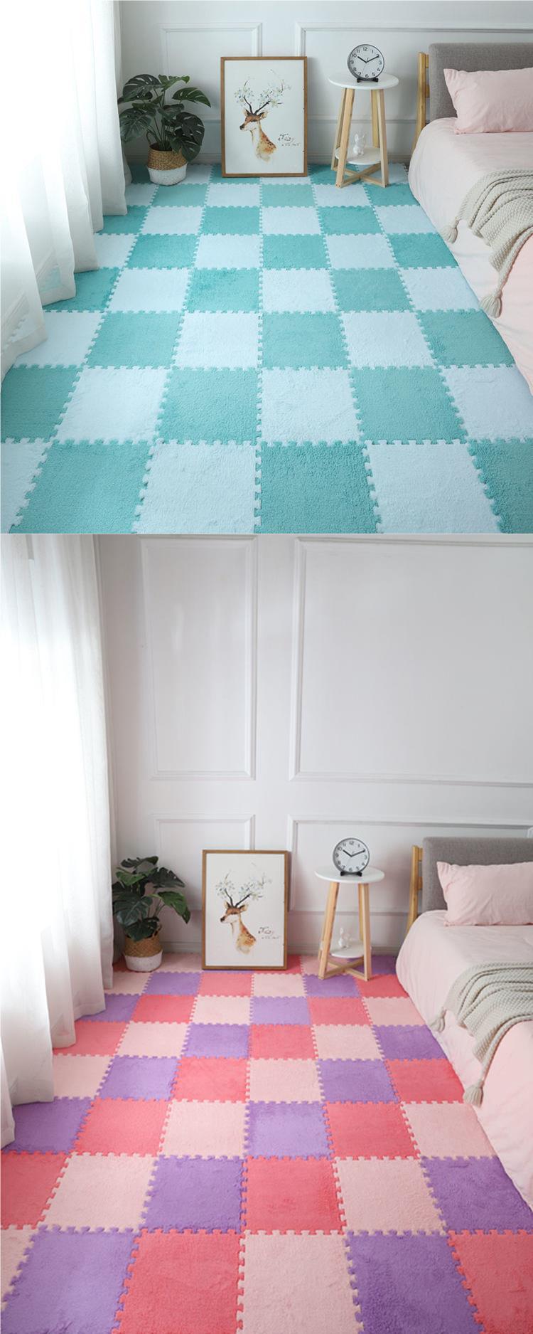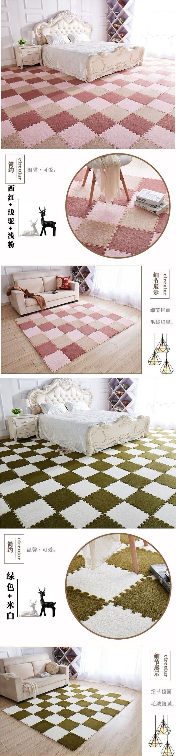 寝室のじゅうたんは部屋いっぱいのベッドの上の四角が可愛いです。