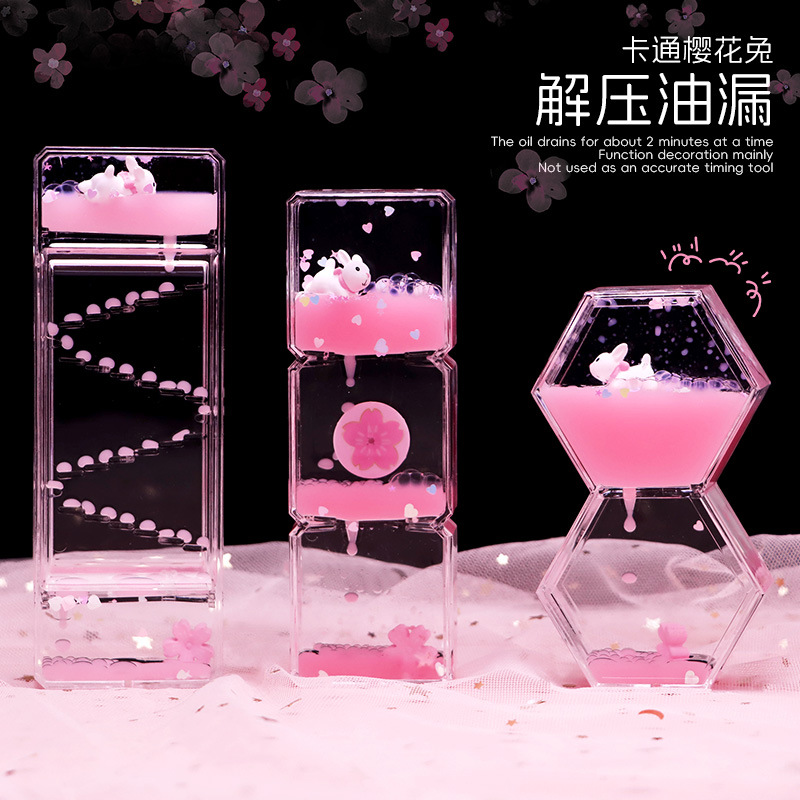 かわいい桜の油漏れオーナメント、減圧砂時計、クリエイティブな流砂、中国のバレンタインデー、クリスマス、女の子の誕生日プレゼント