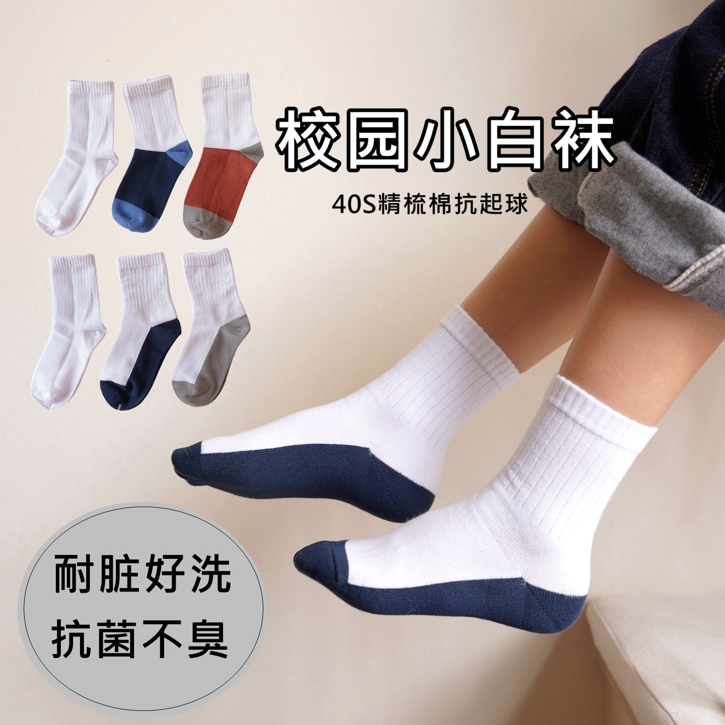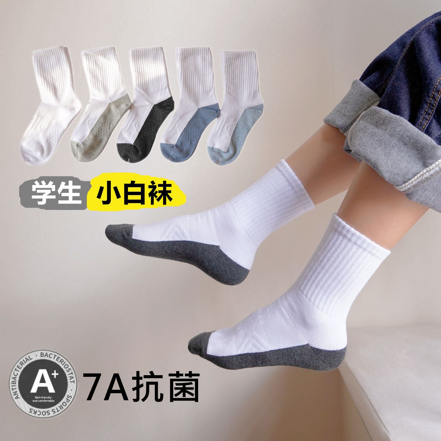 秋冬子供用靴下吸汗防臭抗菌白色学生用靴下通気性男の子用女の子用靴下卸