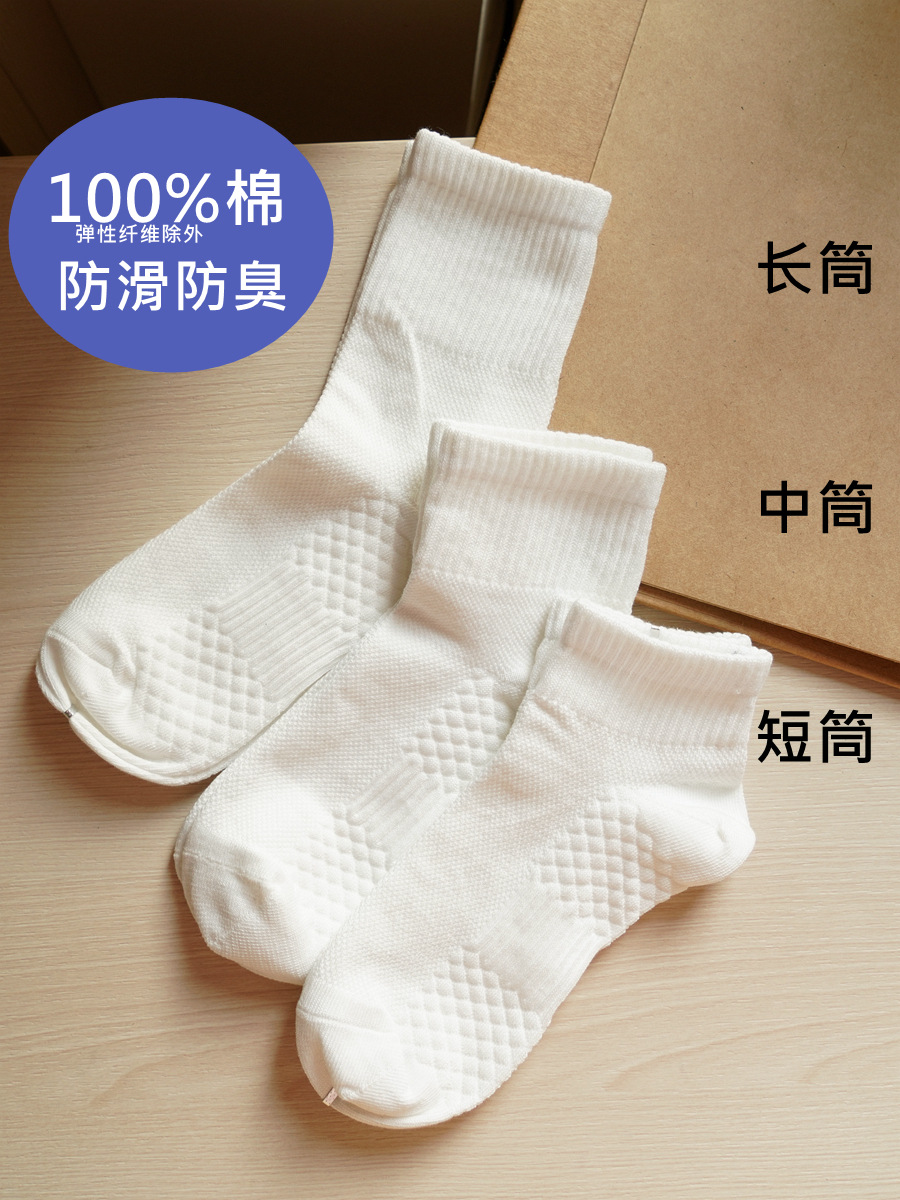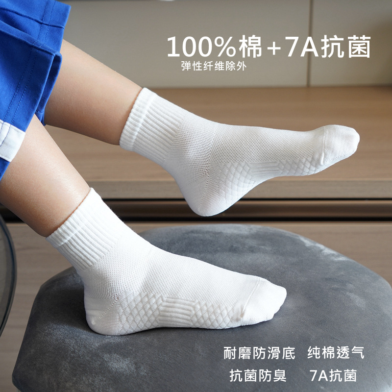 卸売子供用靴下白い滑り止めスポーツ綿消臭学生靴下男の子と女の子用、独立してパッケージ化されたミッドチューブソックス