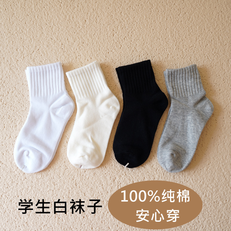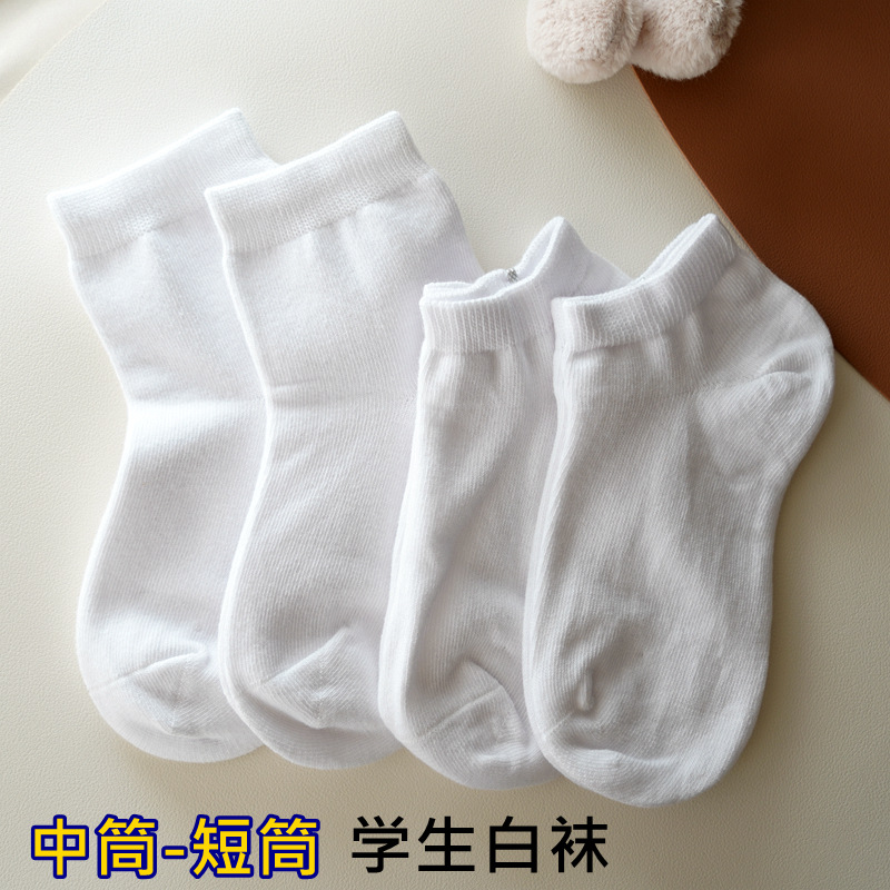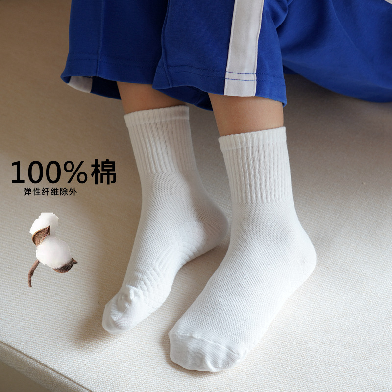 卸売り男女児童靴下白い靴下男の子スポーツ靴下純綿防臭中筒靴下乳白色児童靴下