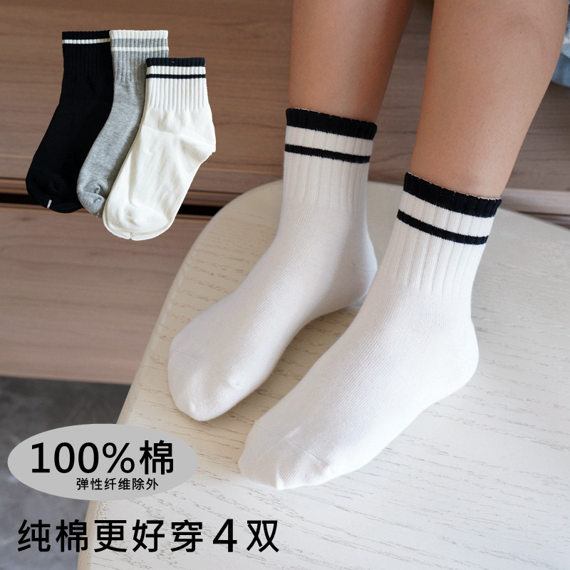子供用の白い靴下春と秋の純綿の男の子と子供の靴下の赤ちゃんの秋冬の小中学生の純綿の中筒の靴下