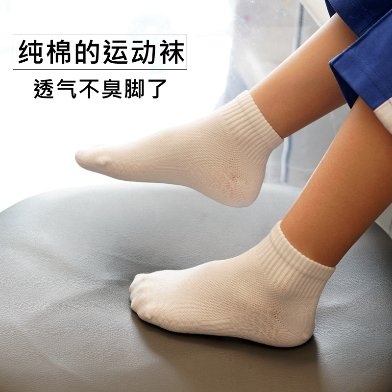 夏の子供の白い学生の靴下の純綿の靴下のネットの目の薄い金の男女の子供の純白の靴下の中で靴下の卸売りをします。