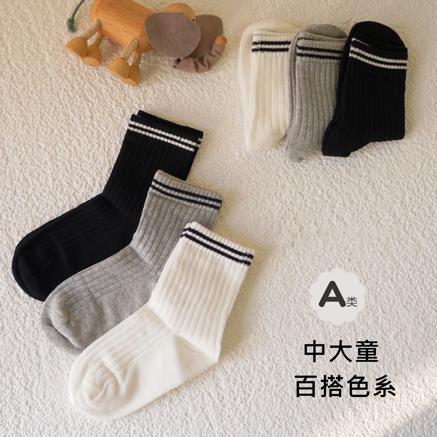 儿童袜子白色学生袜春秋款白色灰底棉袜吸汗防臭男童女童中筒袜