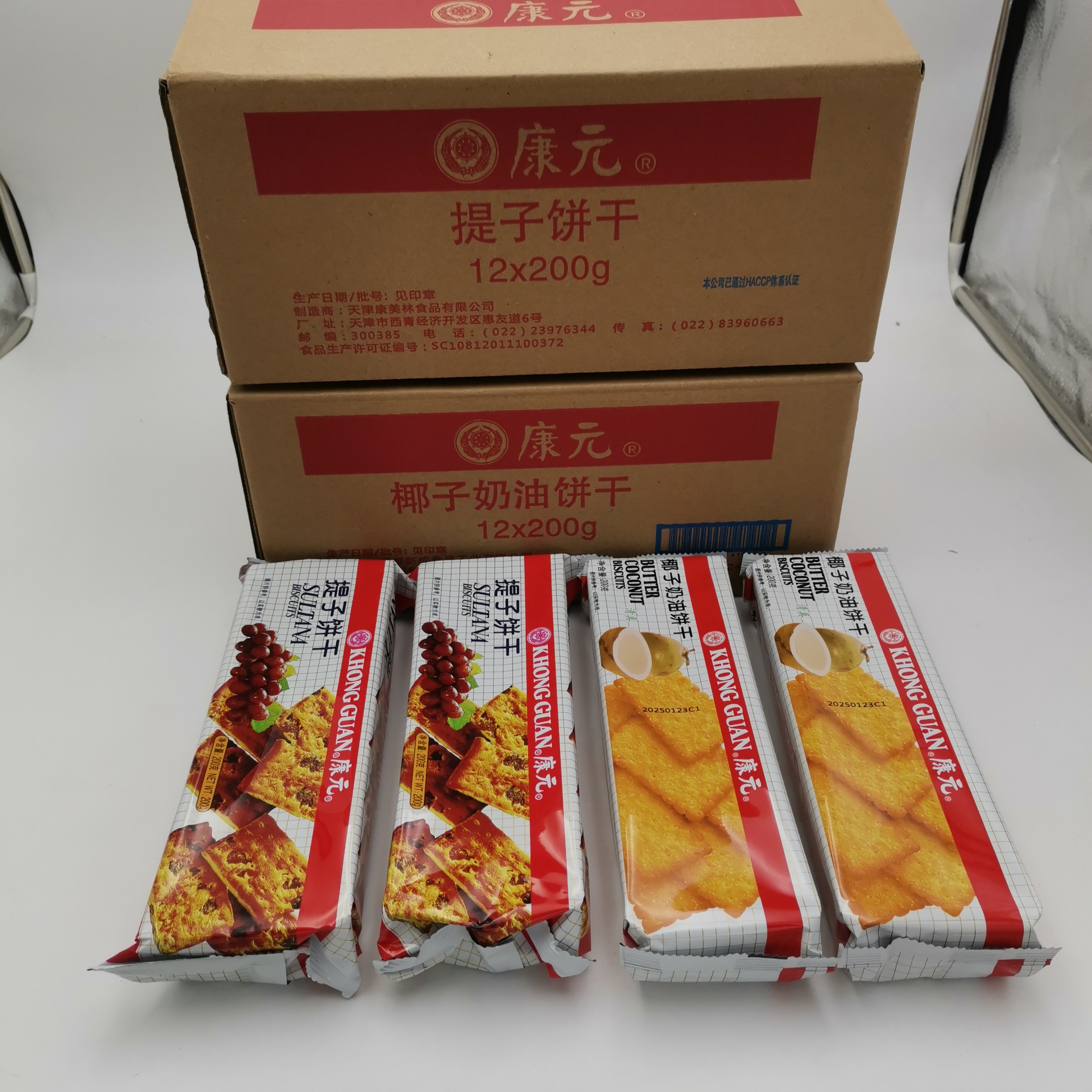 康元200gココナッツクリームビスケットの提子ビスケットの箱全体 = 12袋の朝食は飢えを満たして食事をします。