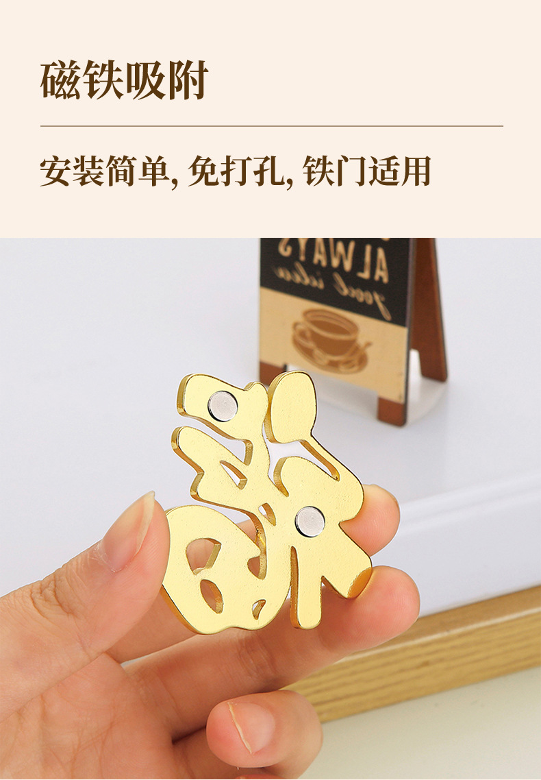 金色の装飾はミニの扉を貼って磁石を貼って鉄の扉を吸着して銅の銭の福の書道の福の字の冷蔵庫の箱の扉を適用します。