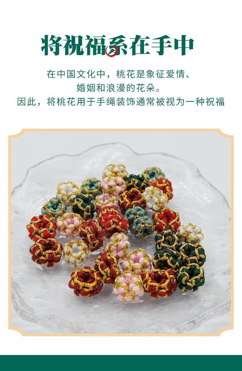diy手绳半成品可穿转运珠黄金手工编绳桃花结手链女款红绳编织绳