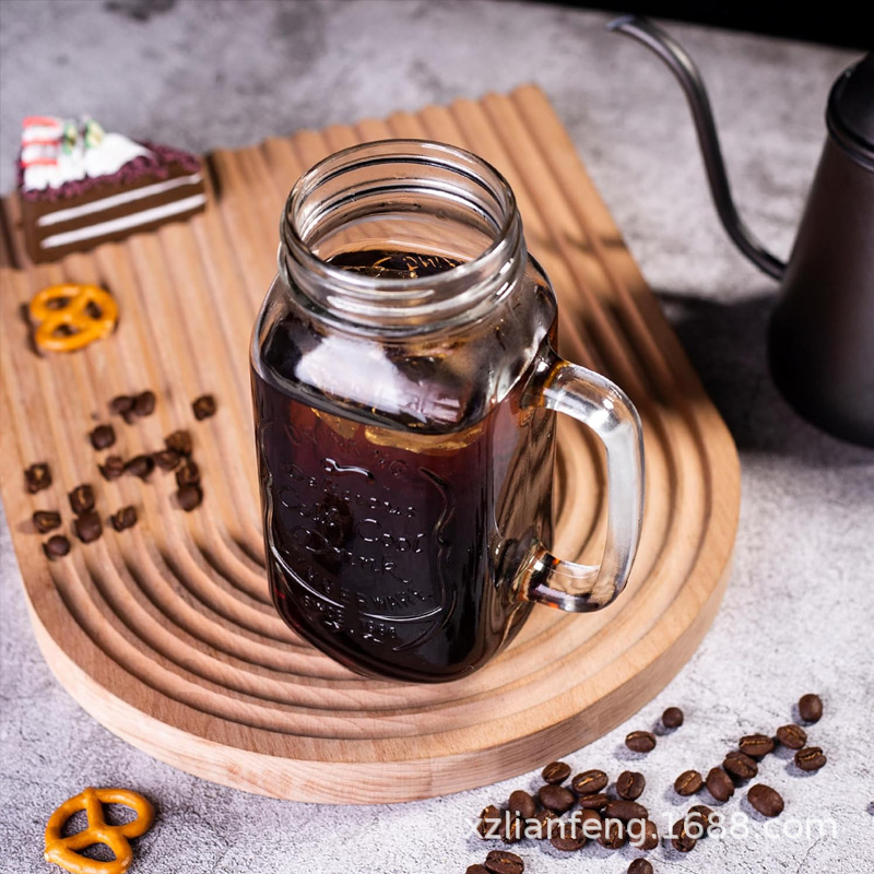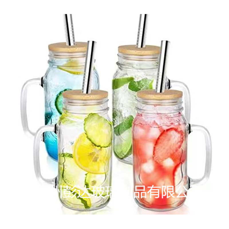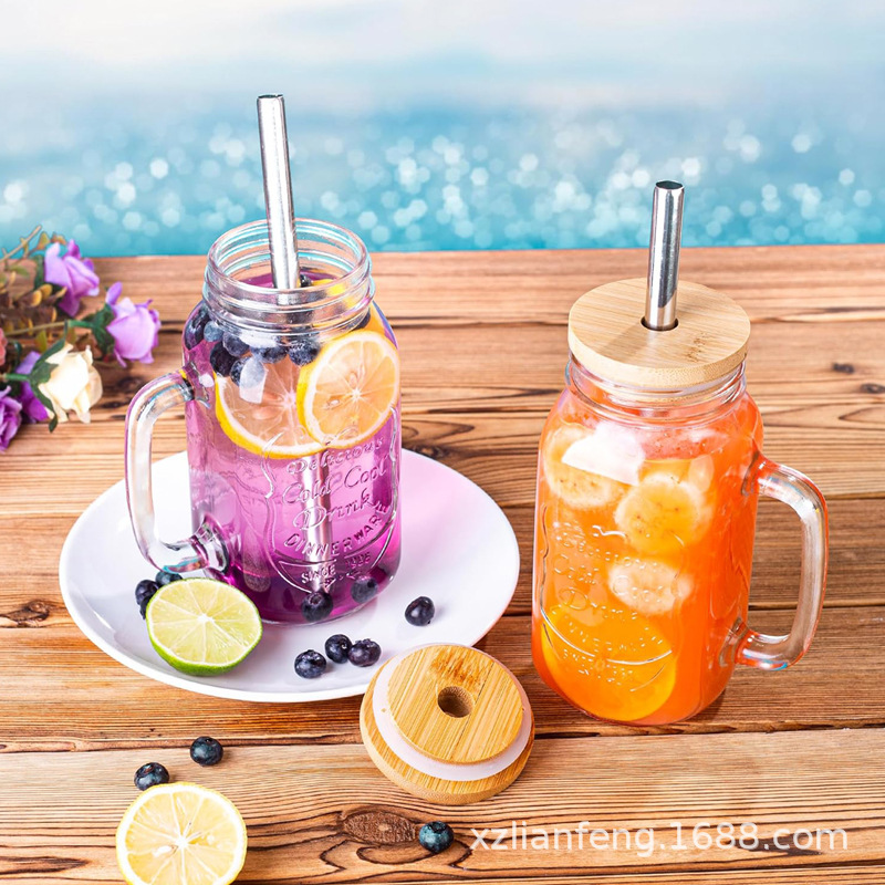 メーカー卸売 1841 ハンドル付きカップ 24オンス メイソンジャー グラス ストロー付き 木製蓋付きボトル グラス製水筒 冷たい飲み物卸売