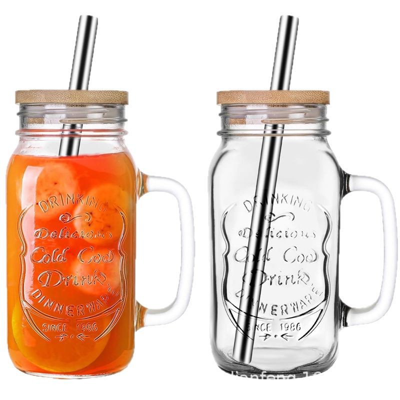 蓋付きグラス飲料花茶カップミルクティージュース透明ガラスメイソンカップストロー冷たい飲料カップ
