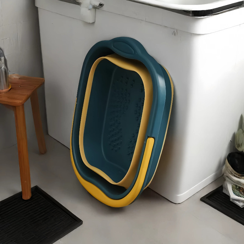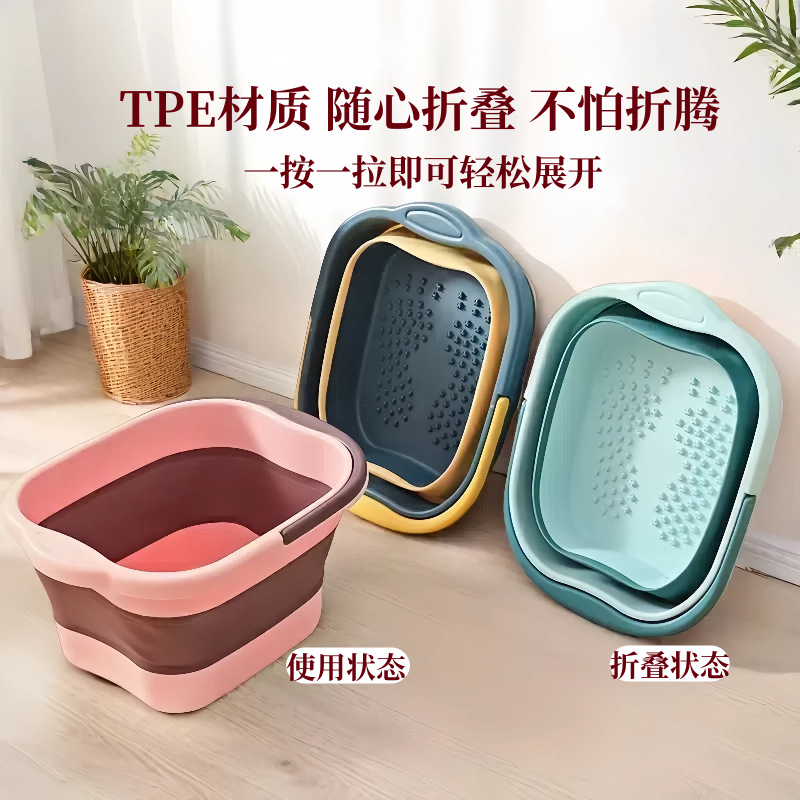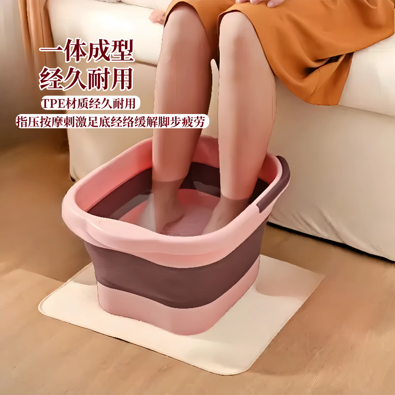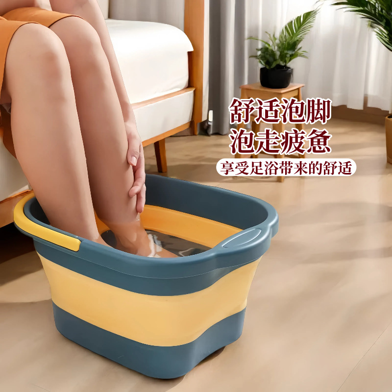 足を浸す桶の家庭はふくらはぎのプラスチックの足を洗うたらいの養生のマッサージをします。