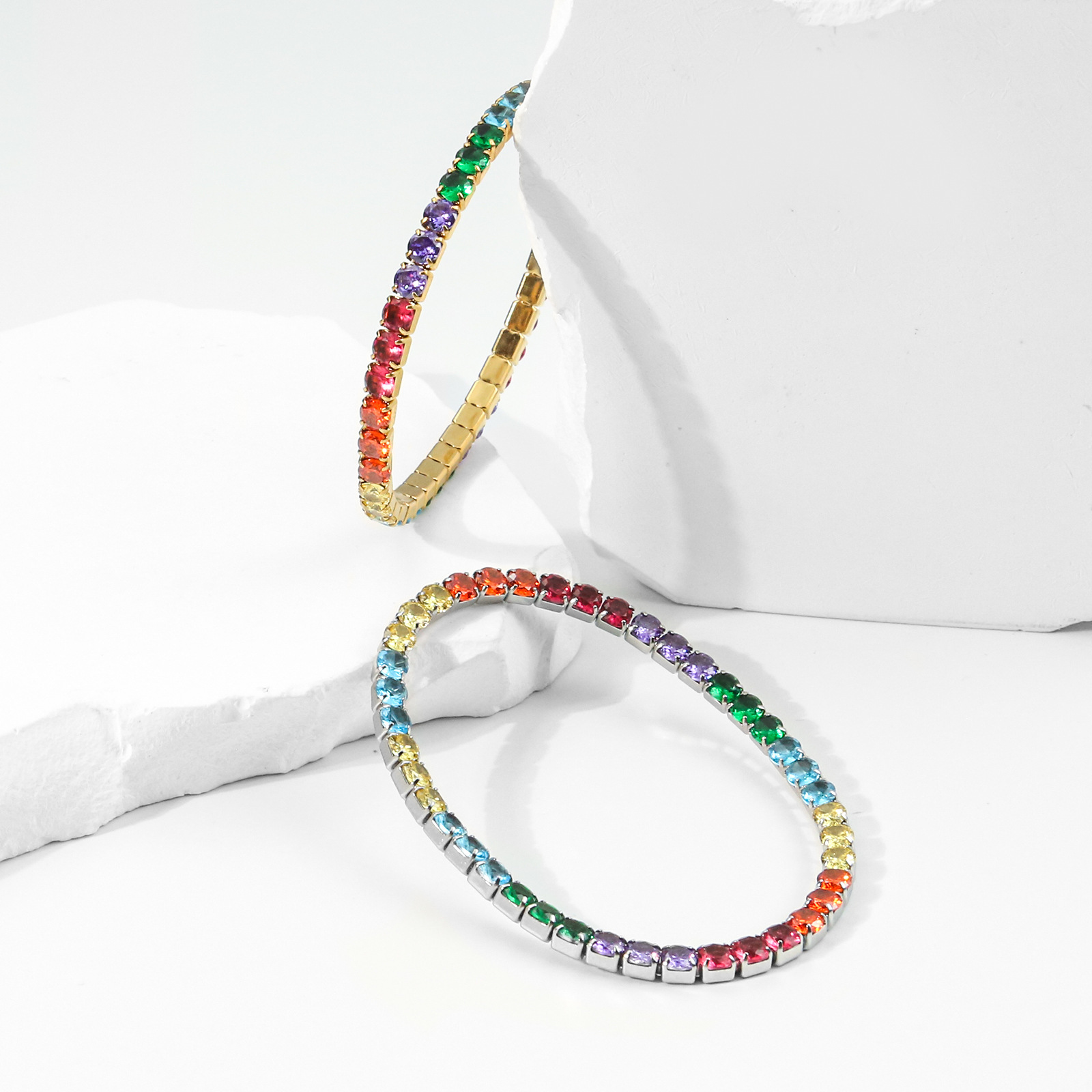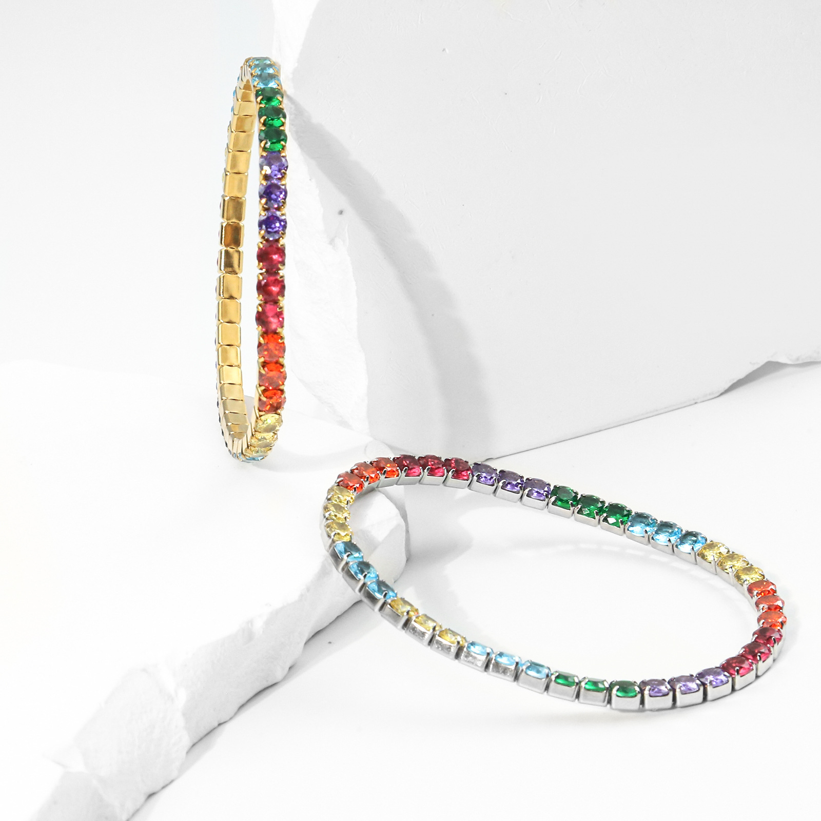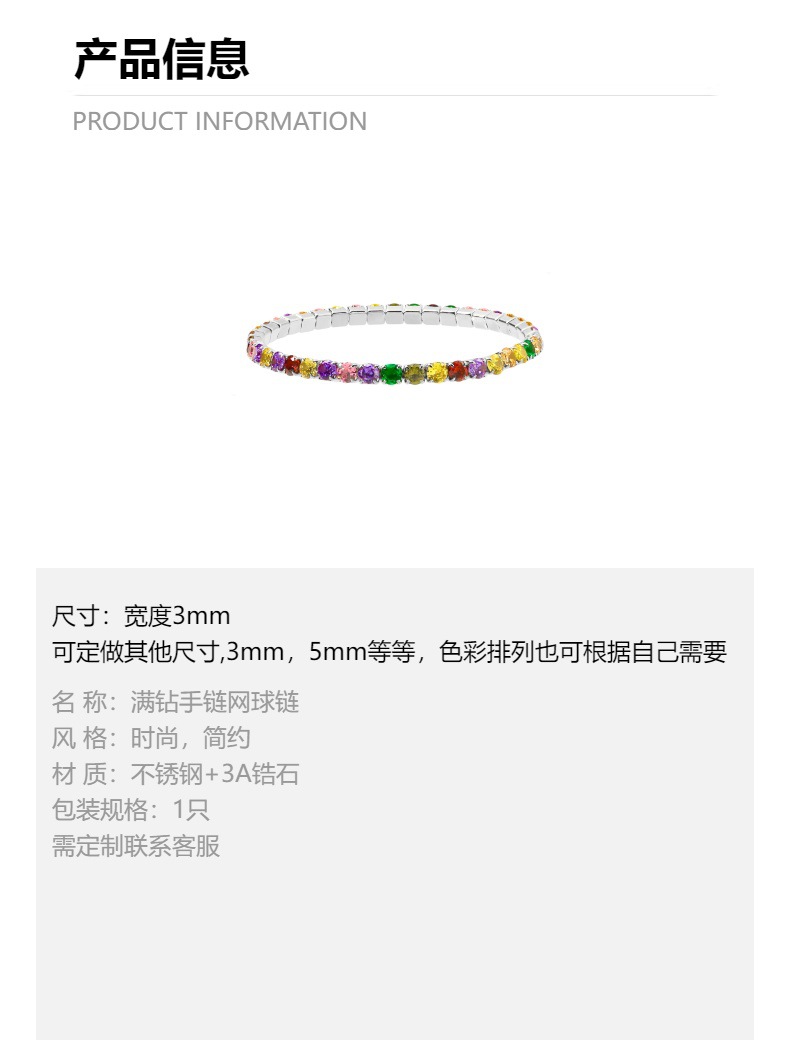 メーカー卸売り男女同型テニスチェーン満ドリルブレスレットチタン鋼白黒ジルコン調節可能弾性ロープブレスレット