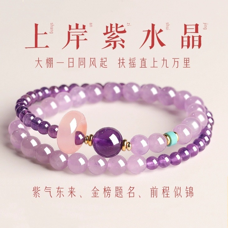 プレトリア山上陸紫水晶ブレスレット女性天然水晶輸送珠小衆精致幸運双輪手串プレゼント