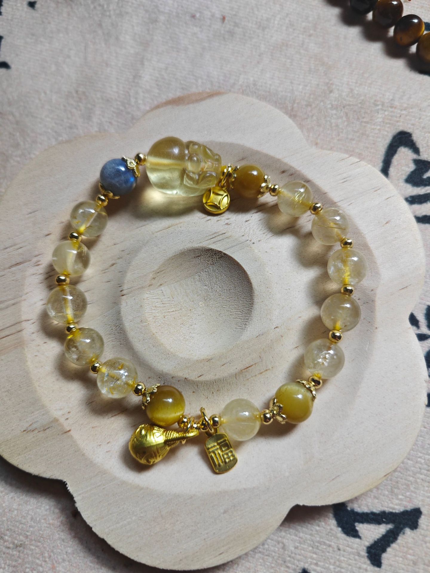 招财黄水晶串珠手女轻奢小众精致高级感珠串叠戴手串转手饰