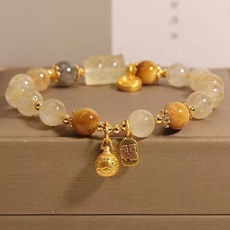 金发晶水晶月光石手链女吞金兽黄虎眼石黄发晶手串送女友闺蜜礼物