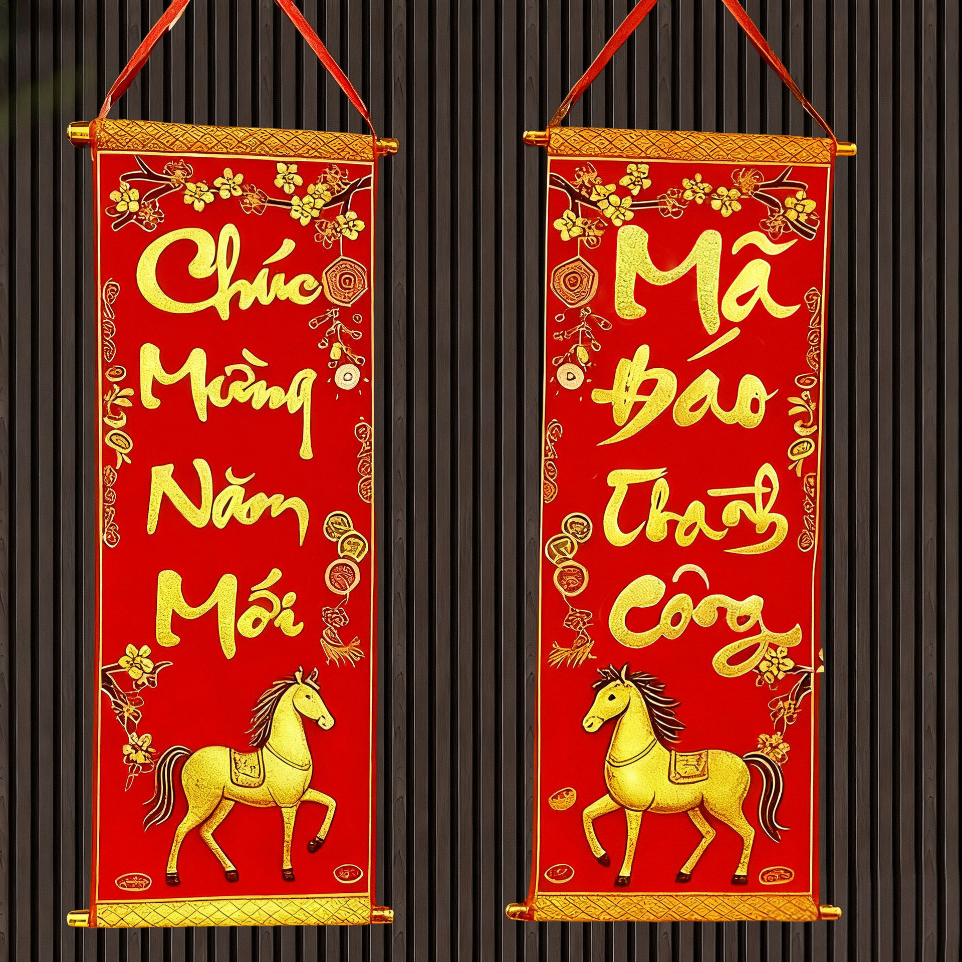 2025新款挂式对联越南文字元宝灯笼财神对挂过年春节客厅大门装饰