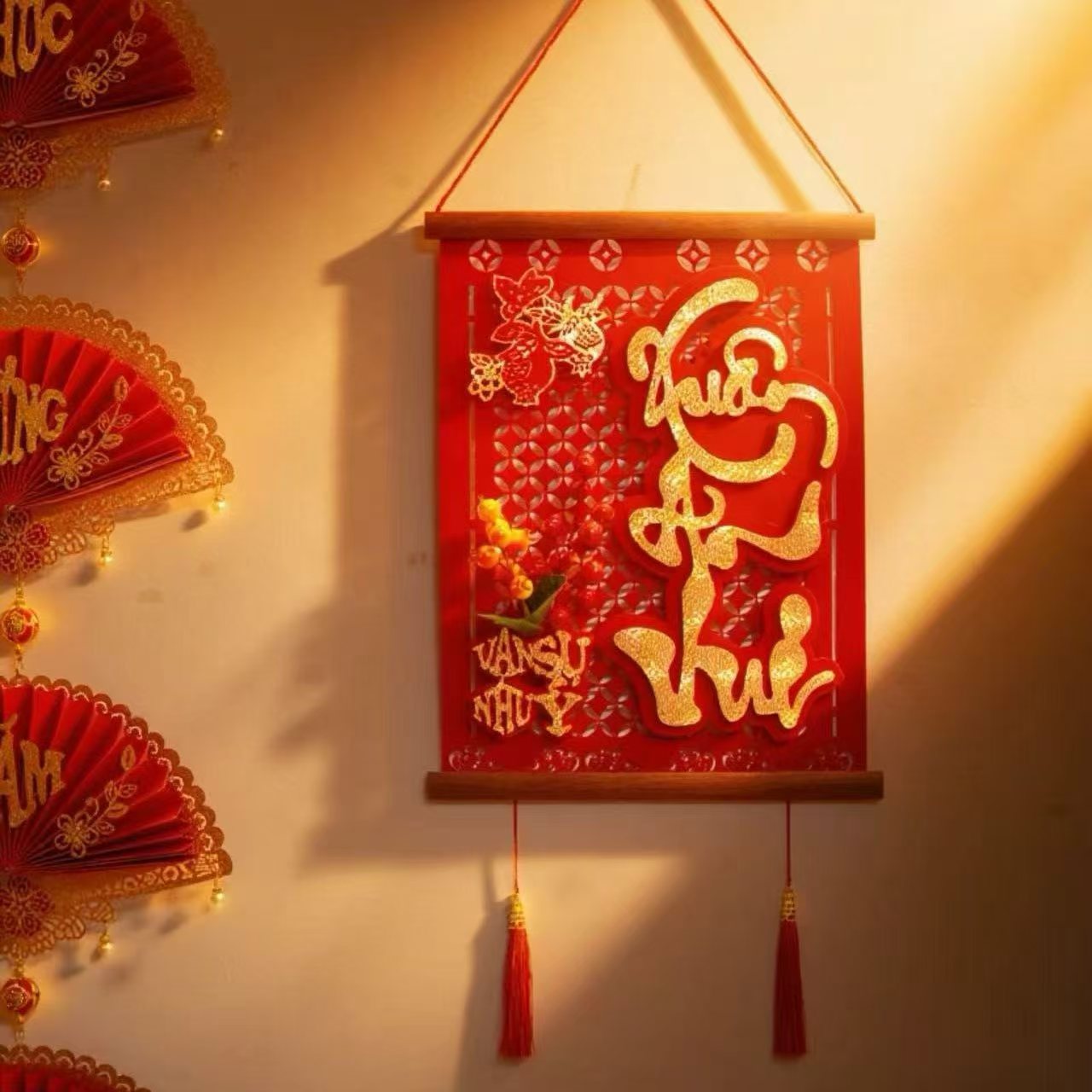 新款春节过年装饰挂件越南文字高级感时尚大气装饰喜庆挂件