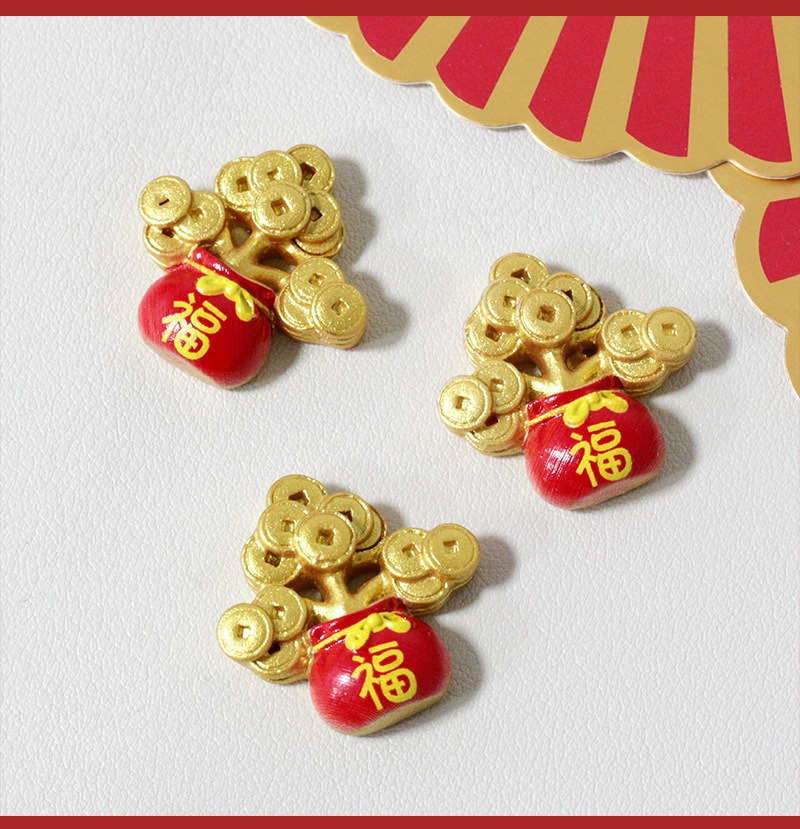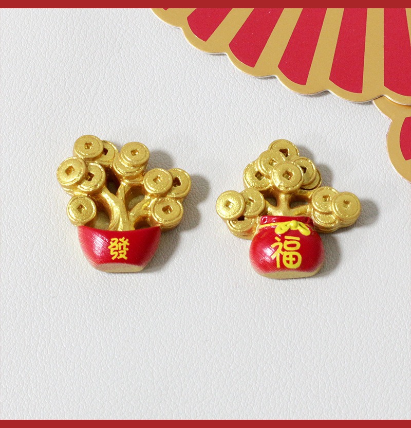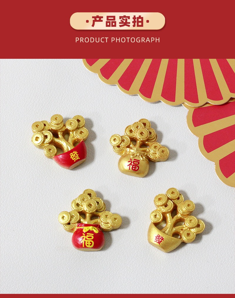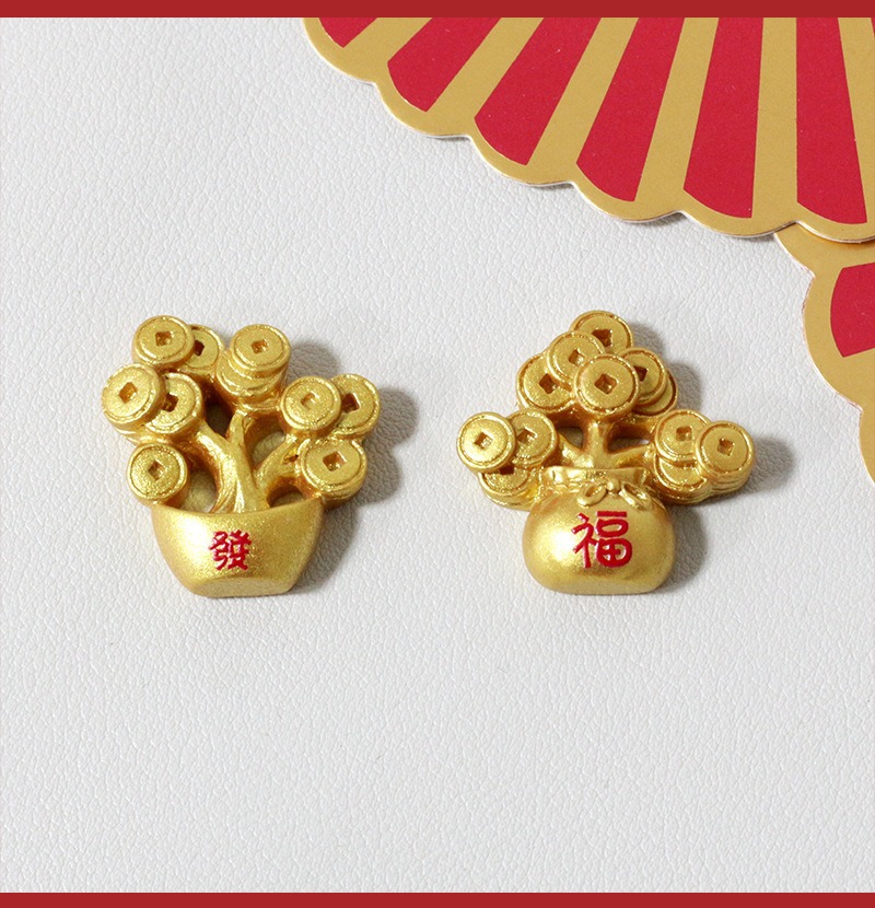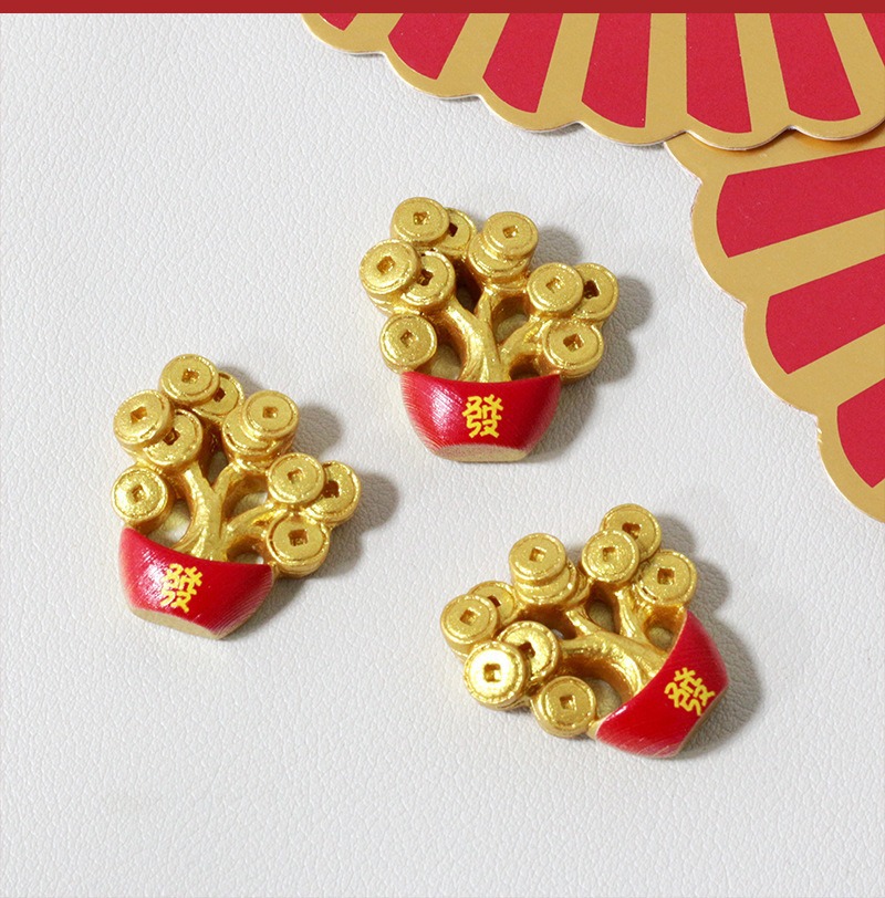 新年元宝发财树diy饰品配件 手工摆件手机壳冰箱贴树脂车载装饰贴