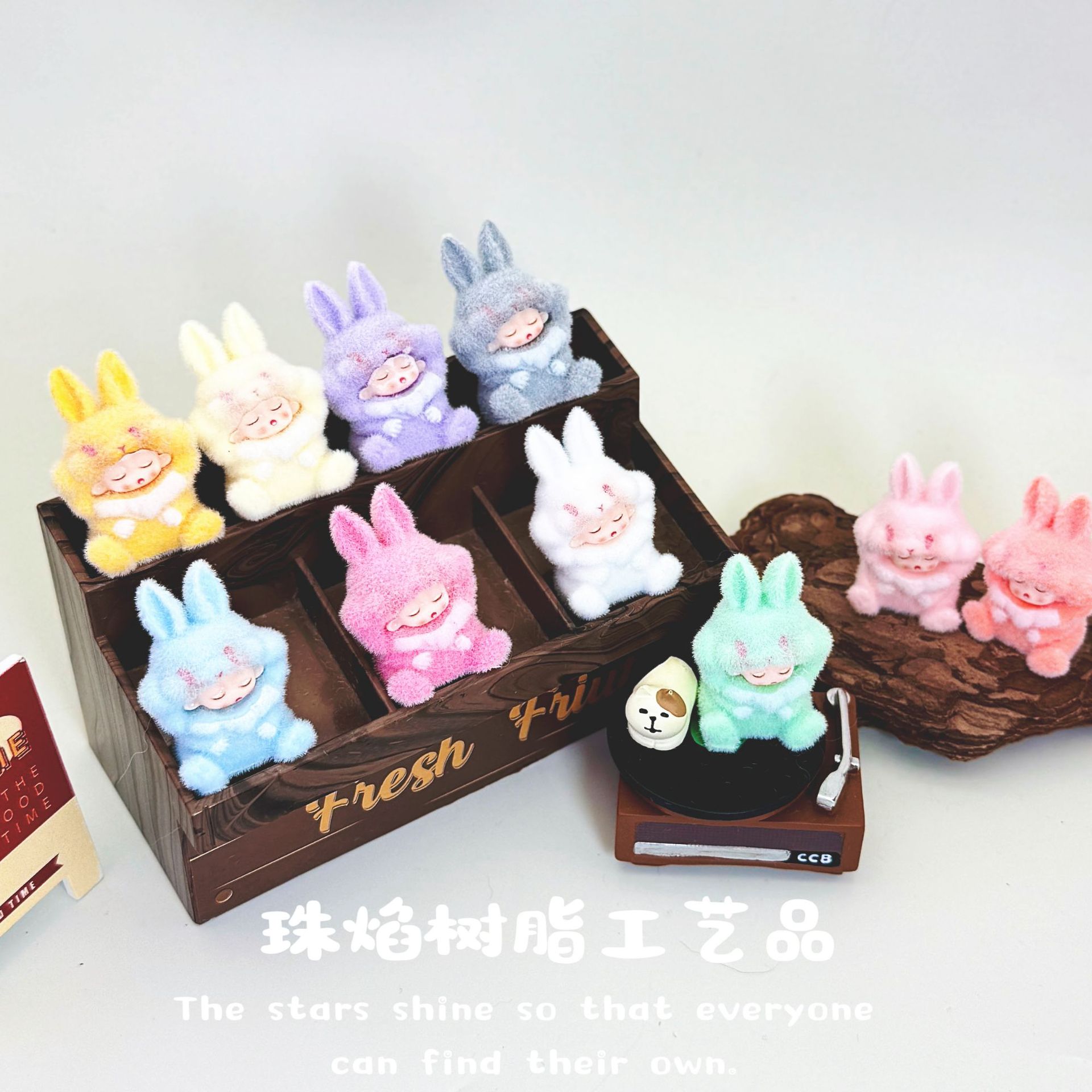 植毛雲夢嫦娥ウサギ樹脂かわいい装飾品 diy ジュエリーアクセサリー車のトレンディなおもちゃ人形デスクトップ小さな装飾品
